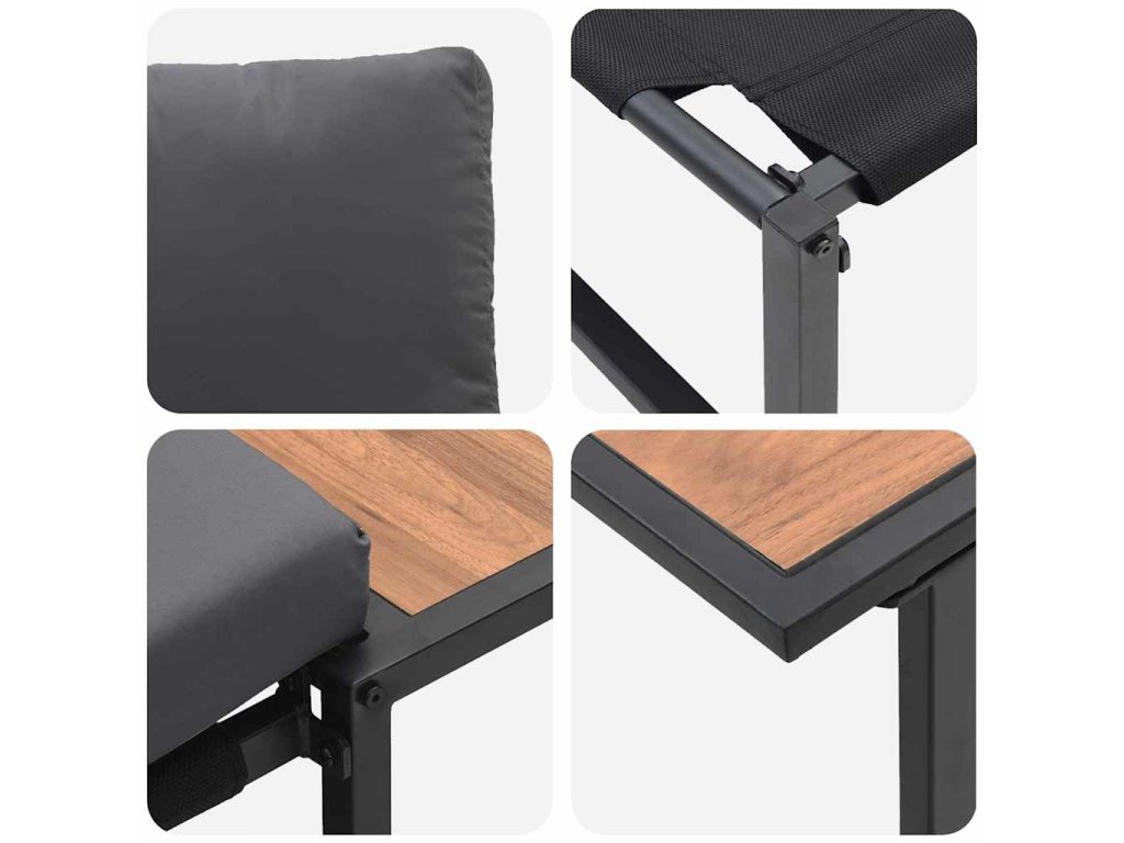 - Venkovní použití: Tento jídelní set je navržen pro venkovní využití, odolává UV paprskům a vlhkosti. Při nepoužívání ho můžete chránit zakrytím, což prodlužuje jeho životnost, i když zvládá různé povětrnostní vlivy.