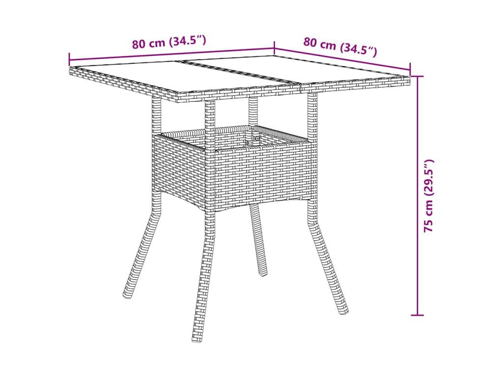 - Tvrzená skleněná deska Tvrzená skleněná deska stolu nejenže nádherně odráží světlo, ale také je velmi praktická, nabízí odolnost a hladký, snadno čistitelný povrch. Ideální pro venkovní stolování, snáší běžné venkovní podmínky a dodává celému setu šmrnc.