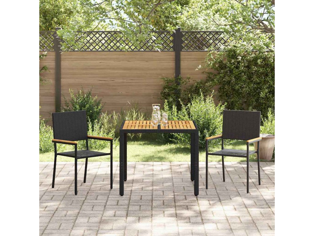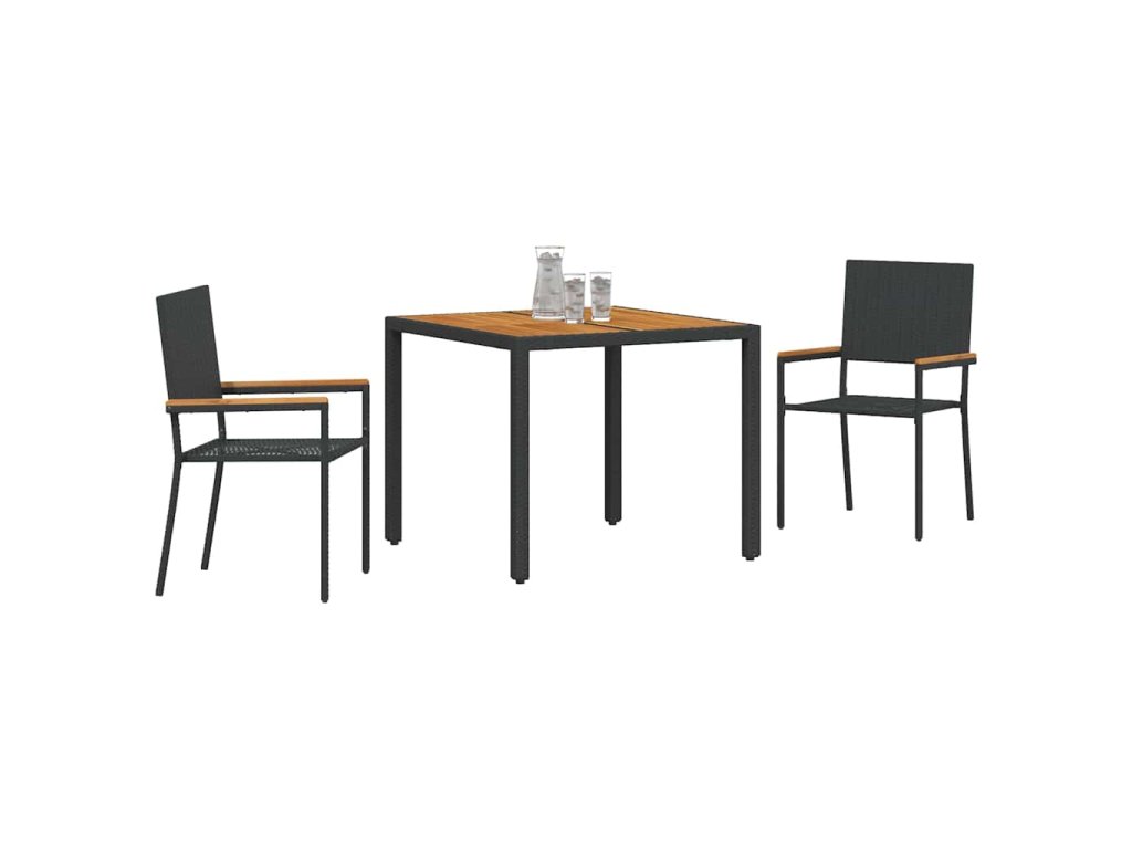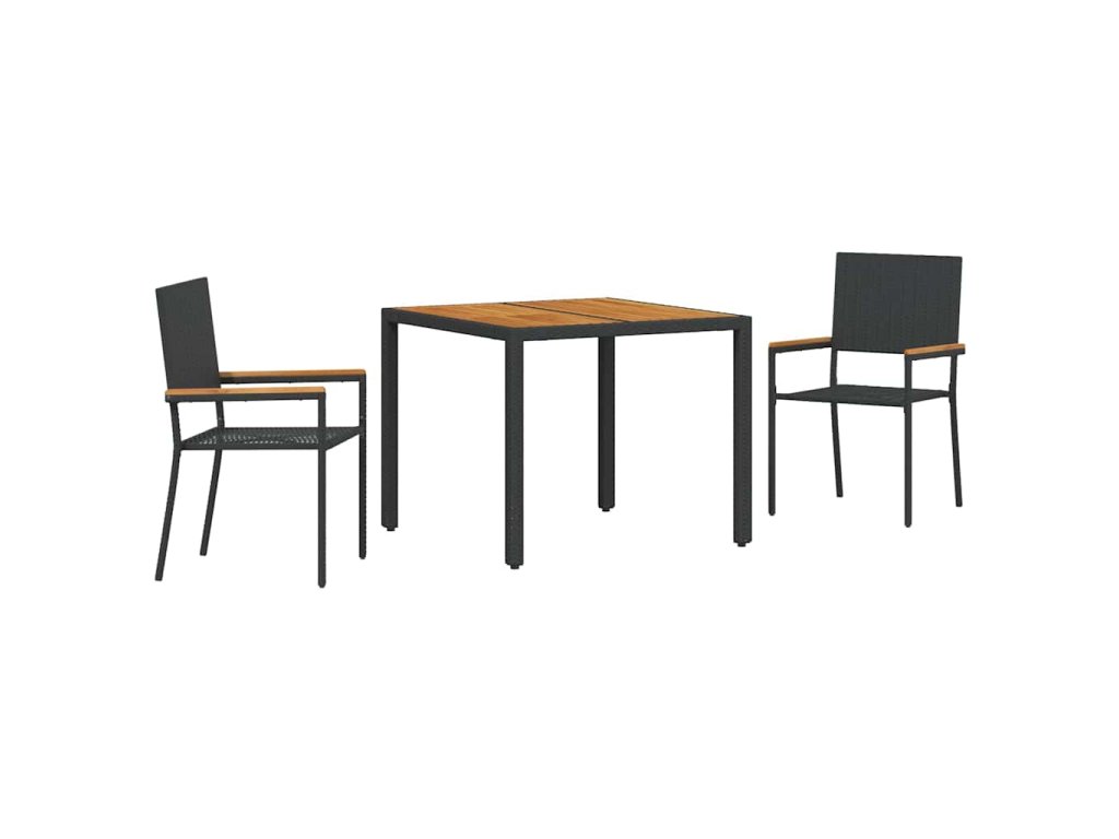 Zahradní jídelní souprava 3 pcs Černá polyratan 3365402
