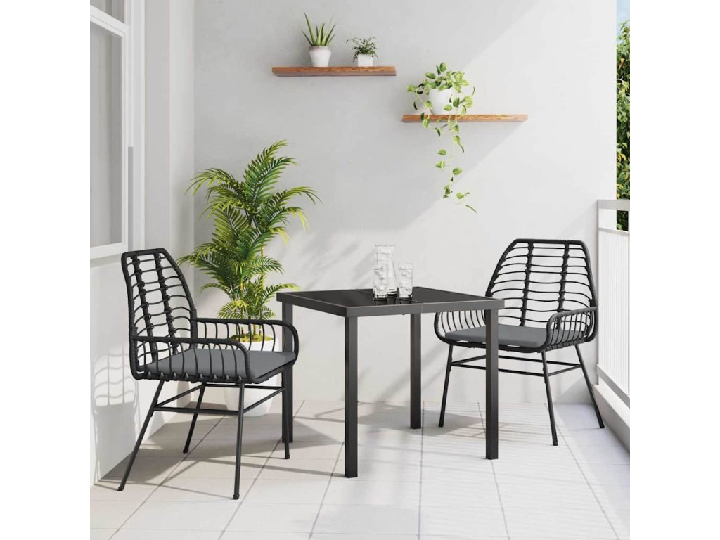Zahradní jídelní souprava 3 pcs Černá polyratan 3380855
