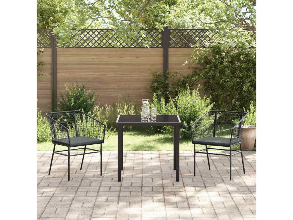 Zahradní jídelní souprava 3 pcs Černá polyratan 3380904