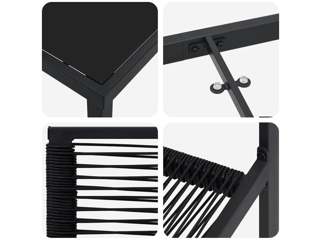 - Funkční vlastnosti: Díky UV odolným materiálům tento zahradní jídelní set necítí účinky slunce, takže se neblejskne a neztratí barvu. Tato vlastnost chrání set před různými povětrnostními vlivy a přináší stylový a pohodlný zážitek venku.