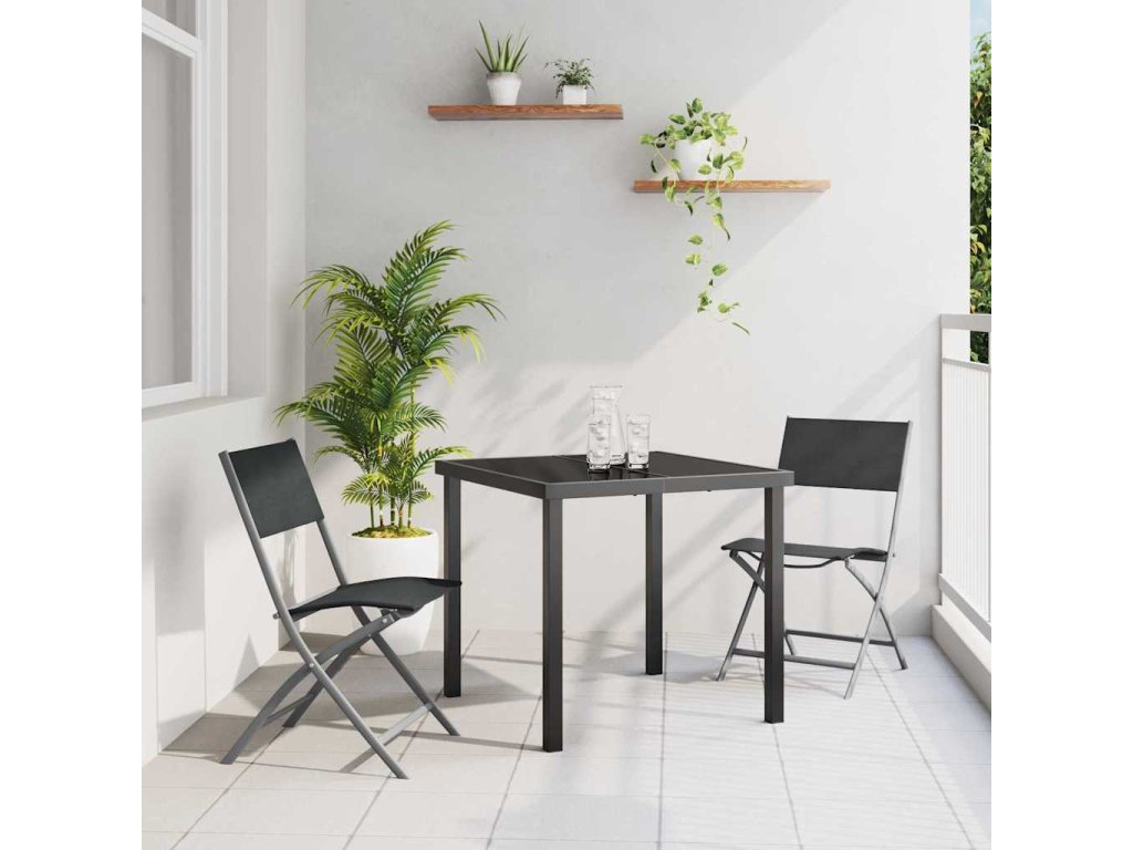 Zahradní jídelní souprava 3 pcs Černá Práškově lakovaná ocel 3379373
