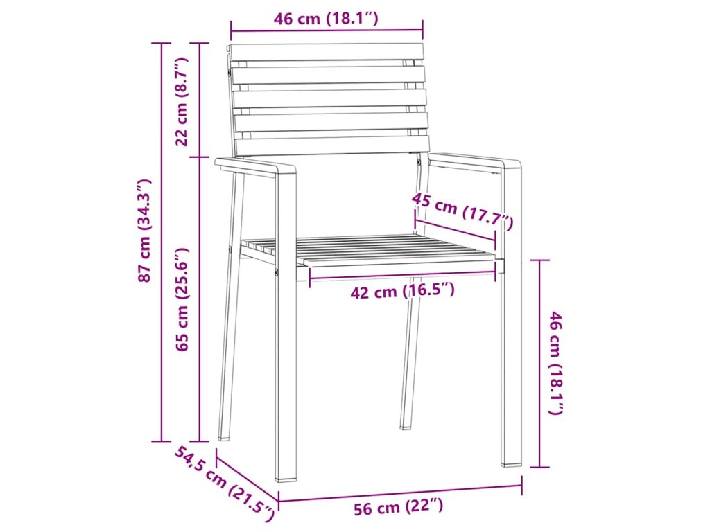 - 2 x Zahradní židle: 56 x 54,5 x 87 cm (D x Š x V)