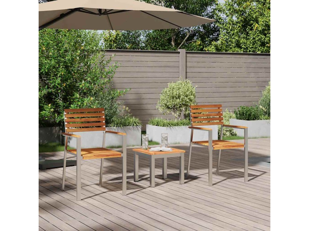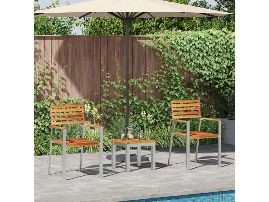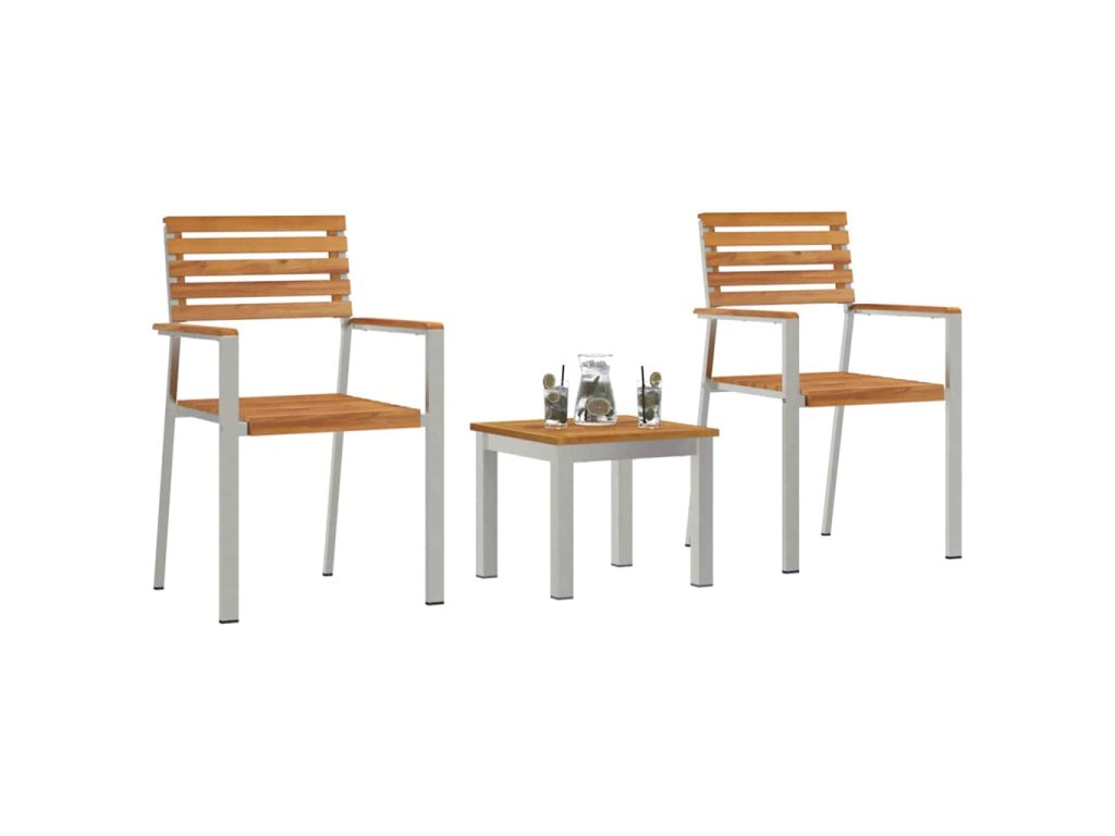 - Součásti: V sadě je zahradní stůl (45 x 45 x 38 cm) a dvě židle (56 x 54,5 x 87 cm). Židle mají ploché opěrky rukou pro pohodlné sezení, stůl má stabilní nohy, které zajišťují pevnost na jakémkoli povrchu.