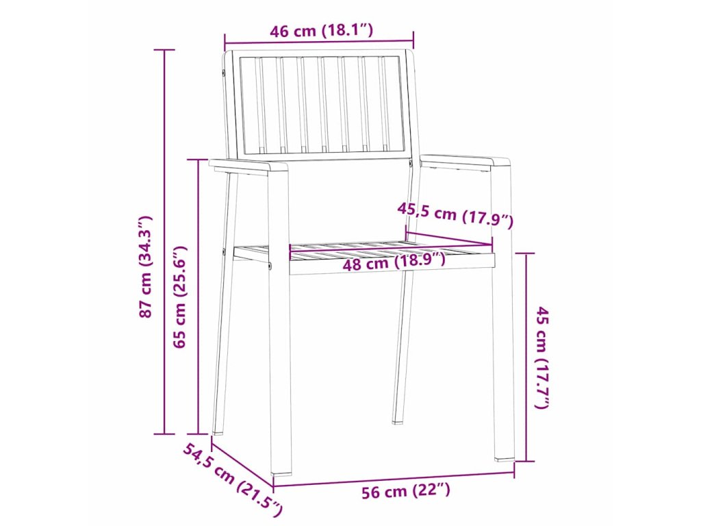 - 2 x Zahradní židle: 56 x 54.5 x 87 cm (D x Š x V)