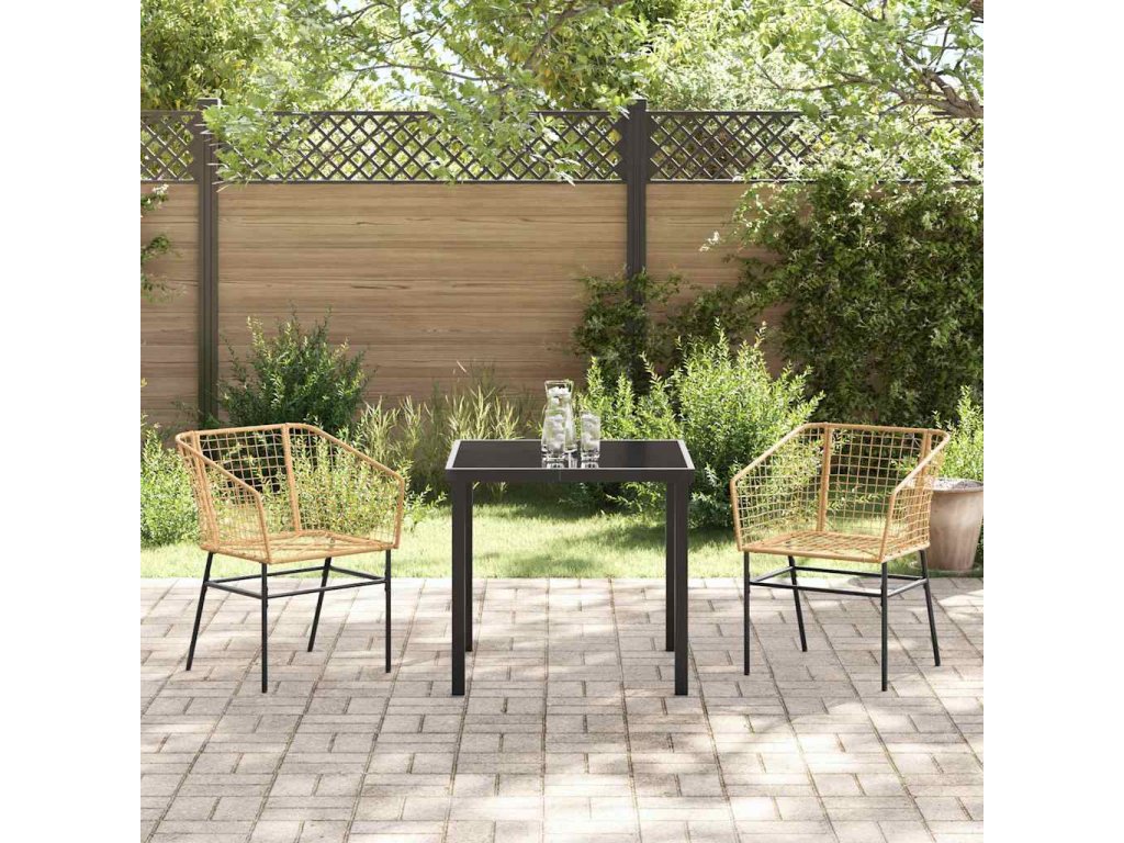 - Materiály: Tento skvělý jídelní set je primárně z poly ratanu, který je oblíbený díky své spolehlivosti a odolnosti vůči počasí. Práškově lakovaná ocel dodává silný rám, který zajišťuje stabilitu a dlouhou životnost. Skleněný povrch mu dodává elegantní vzhled, který se skvěle hodí do různých venkovních prostor a potřebuje minimální údržbu pro skvělý vzhled.