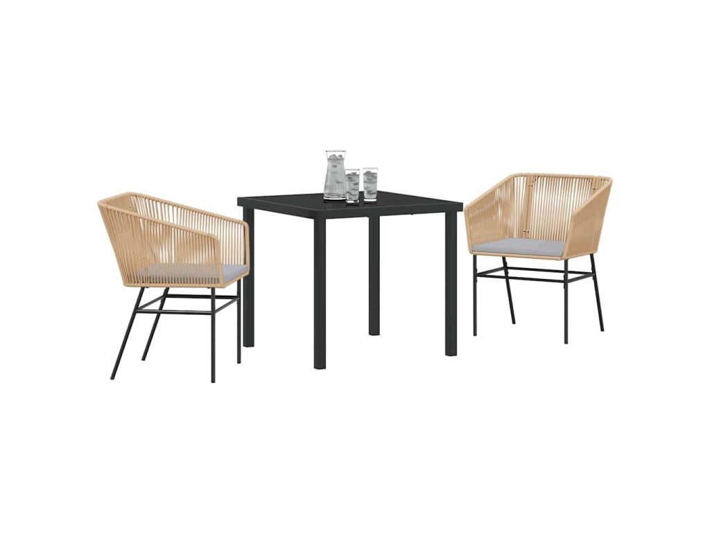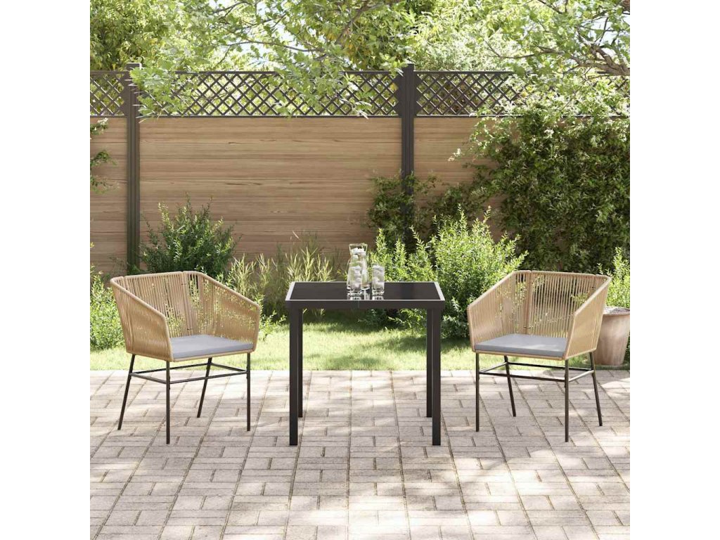 - Zahrnuté komponenty: Každý prvek – opěradlo, sedák, opěrka a nohy – je vyroben z práškově lakované oceli, která zajišťuje pevnost a pohodlí. Desky z tvrzeného skla jsou ideální na rodinná jídla nebo neformální setkání. Venkovní polštáře, které odolávají povětrnostním podmínkám, dodávají pohodlí a dělají z něj komplexní řešení pro venkovní stolování.