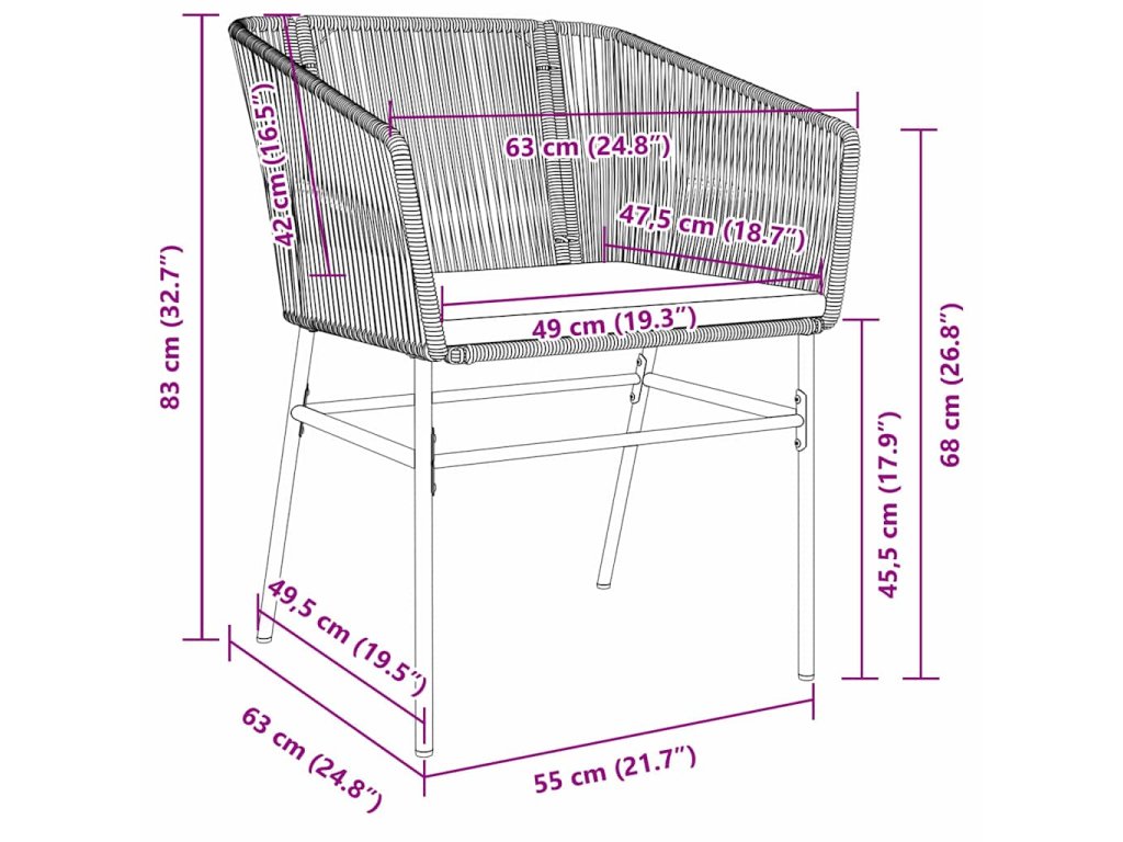 - Zahrnuté komponenty: Každý prvek – opěradlo, sedák, opěrka a nohy – je vyroben z práškově lakované oceli, která zajišťuje pevnost a pohodlí. Desky z tvrzeného skla jsou ideální na rodinná jídla nebo neformální setkání. Venkovní polštáře, které odolávají povětrnostním podmínkám, dodávají pohodlí a dělají z něj komplexní řešení pro venkovní stolování.
