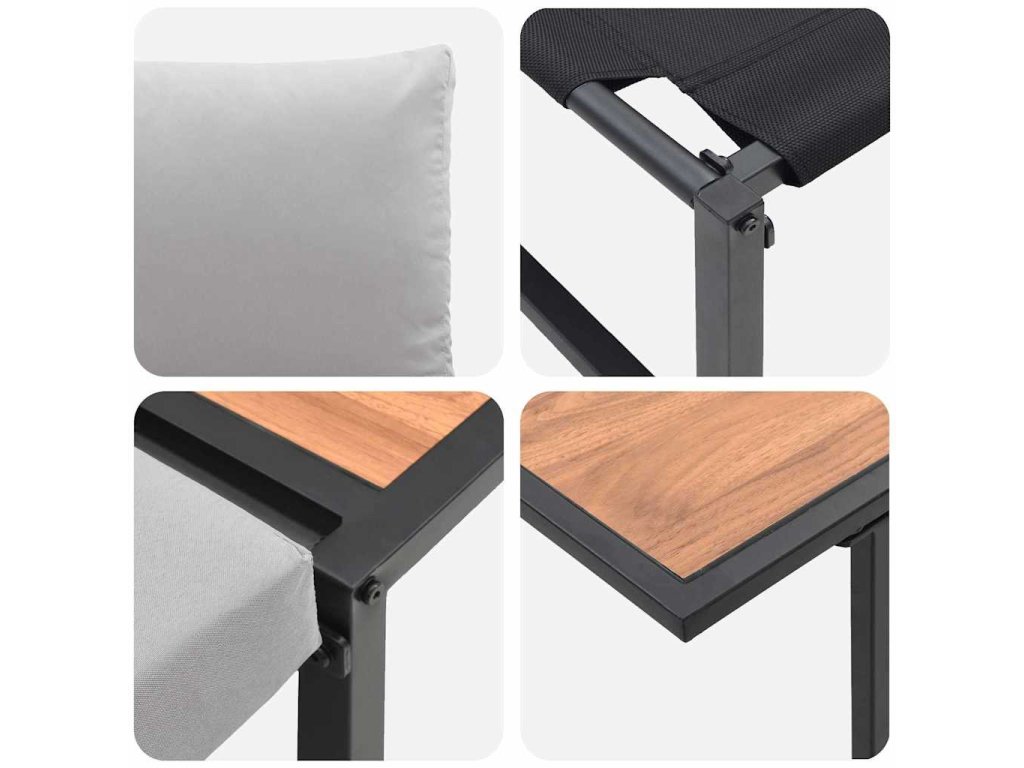 - Venkovní použití: Tento jídelní set je navržen pro venkovní využití, odolává UV paprskům a vlhkosti. Při nepoužívání ho můžete chránit zakrytím, což prodlužuje jeho životnost, i když zvládá různé povětrnostní vlivy.