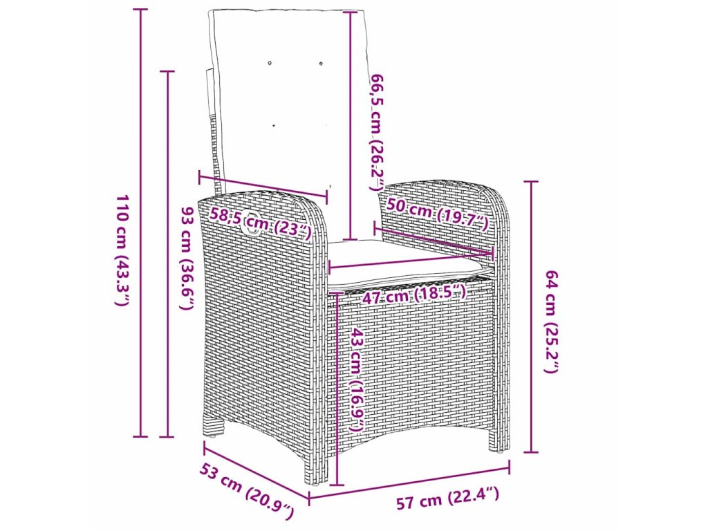 - 2 x Zahradní křeslo: 57 x 58,5 x 110 cm (DxŠxV)