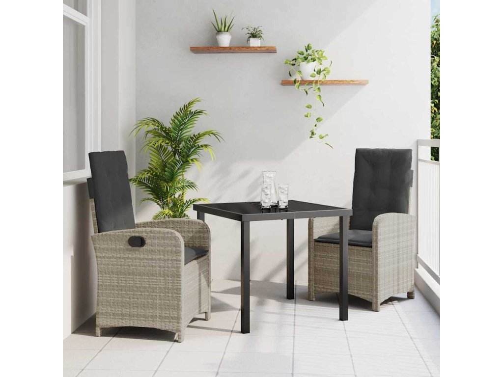 Zahradní jídelní souprava 3 pcs Světle šedá polyratan 3380295