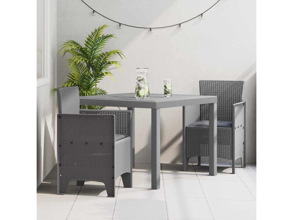 Tento moderní zahradní jídelní set přináší sofistikovanost a funkčnost do různých venkovních prostor. Ideální pro venkovní stolování na terase nebo v zahradě, tento set spojuje elegantní linie s texturovaným povrchem, aby poskytl stylový zážitek při jídle. Skvělý pro letní setkání a venkovní stolování, tento set nabízí pohodlí a pohodlné posezení, včetně polštářů pro každý sedák. Čtvercový stůl a odpovídající židle snadno doplní moderní designy, poskytují elegantní a zároveň neformální prostředí pro rodinné jídla nebo společenská setkání.