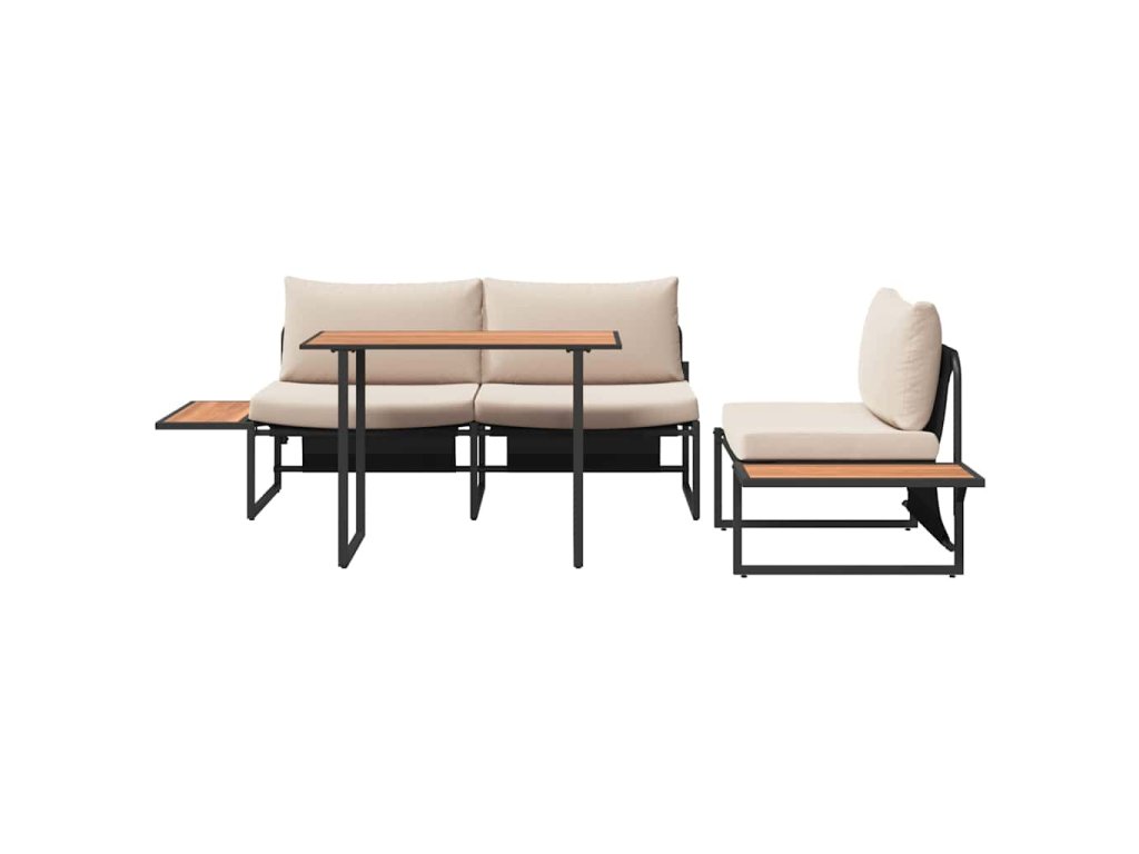 Tato moderní zahradní jídelní souprava je určena pro zahrady a terasy a perfektně spojuje moderní design s praktickým využitím, což ji činí ideální na venkovní setkání a rodinná jídla. Svým elegantním vzhledem nabízí stylové stolování, ale i odolnost vůči špatnému počasí, takže se vždy vyplatí. Představte si večerní večeře pod hvězdami, kdy vám tenhle set dodá vaší venkovní relaxační zóně veškerou sofistikovanost a jednoduchost.