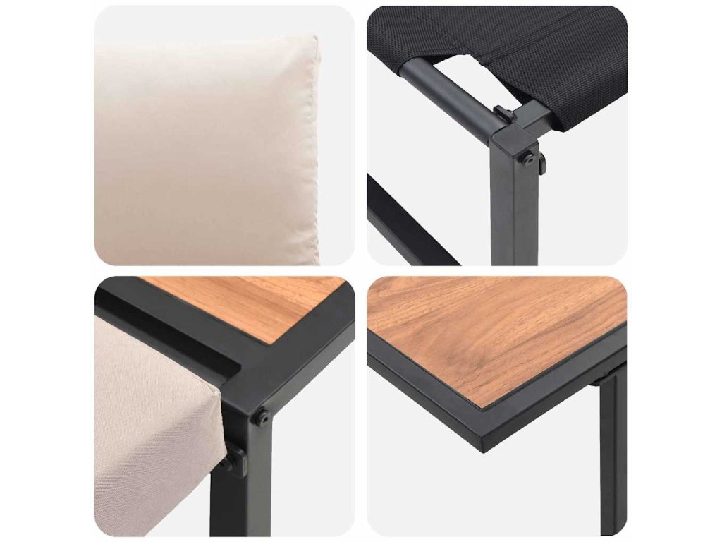 - Venkovní použití: Tento jídelní set je navržen pro venkovní využití, odolává UV paprskům a vlhkosti. Při nepoužívání ho můžete chránit zakrytím, což prodlužuje jeho životnost, i když zvládá různé povětrnostní vlivy.