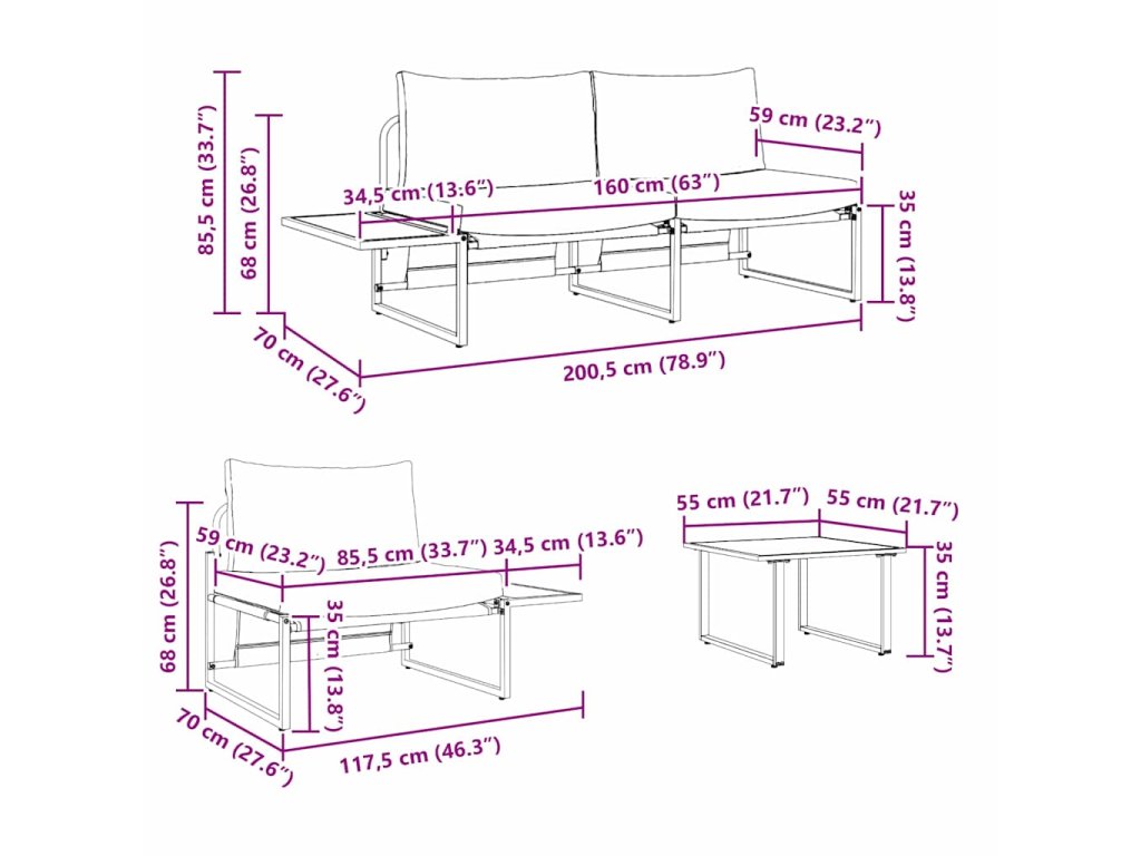 - 1 x Křeslo: 117.5 x 70 x 68 cm (D x Š x V)