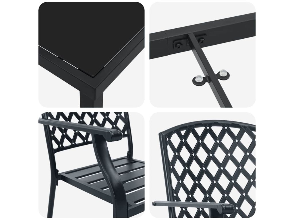 Tento stylový zahradní set udělá fajn dojem v jakémkoli venkovním prostoru. Je navržen v moderním stylu, má čisté linie a minimalistický design, který se fajn hodí k okolí. Set je ideální pro vychytané venkovní stolování, ať už pořádáte malou akci nebo si užíváte klidnou večeři.