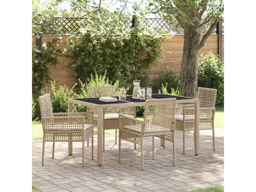 Tato sada zahradního nábytku slouží jako skvělý prvek pro jakýkoli venkovní prostor. Skvěle spojuje styl a funkčnost. S elegantním designem se hodí k různým aktivitám, od neformálních srazů po výjimečné večeře. Je ideální pro moderní zahrady a terasy, kde nabízí spoustu místa k sezení a příjemnou atmosféru. Kombinace poly ratanu a tvrzeného skla vypadá prostě úžasně, a pohodlné polštáře zajišťují relaxaci a pohodlí při jídle.