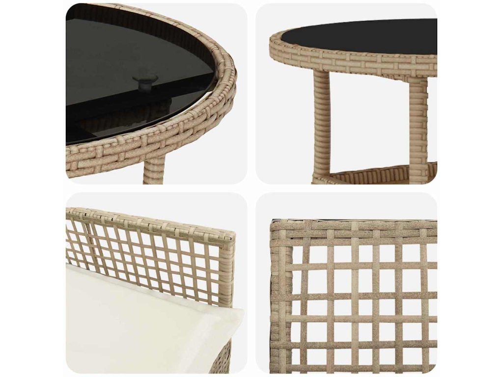 - Rám z poly ratanu: Odolný a perfektní na venkovní využití, i když je venku zle.