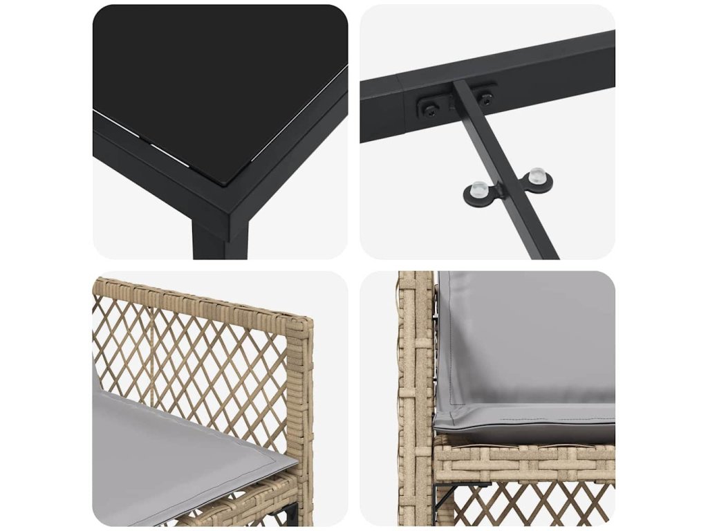 - Pohodlné sezení: Poly ratanové vlákno zaručuje pohodlné sedadlo a opěradlo, které se přizpůsobí tělu a zajišťuje příjemný zážitek. Ať už pořádáte přátele, nebo trávíte klidné chvíle s rodinou, tato místa vás zvou k odpočinku a socializaci.
