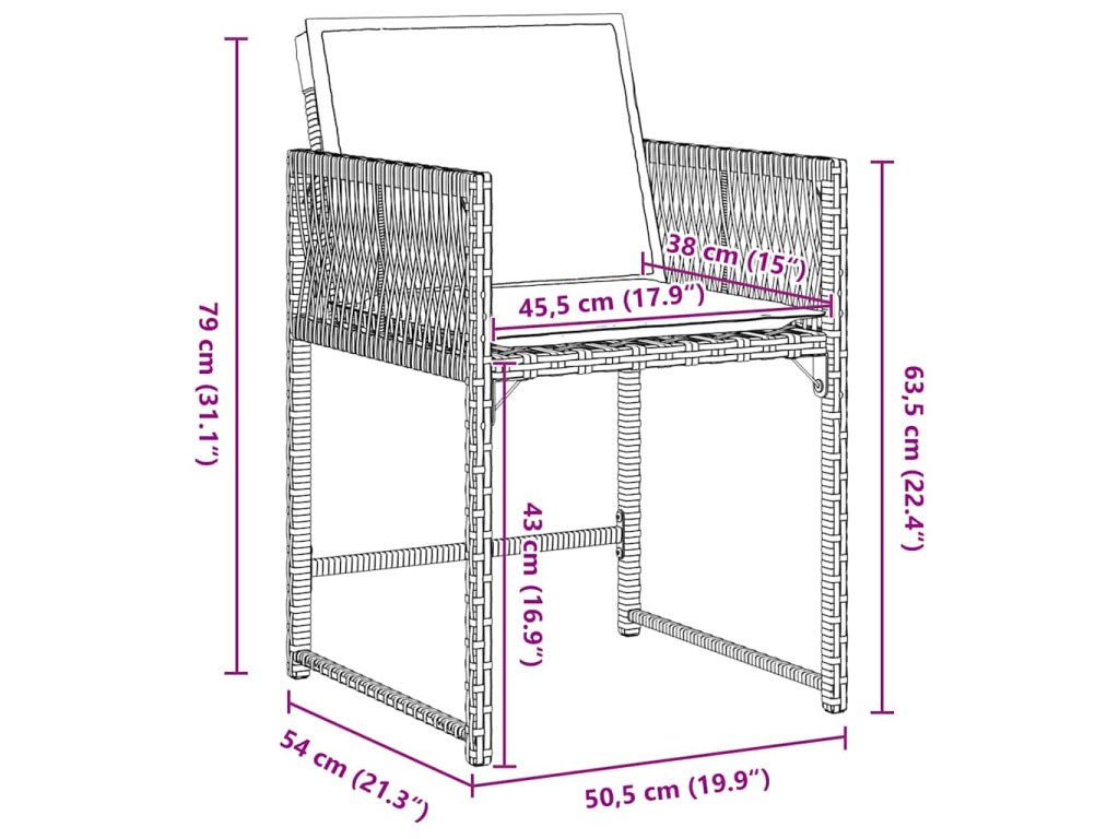 - 4 x Zahradní stolička: 50,5 x 54 x 79 cm (D x Š x V)