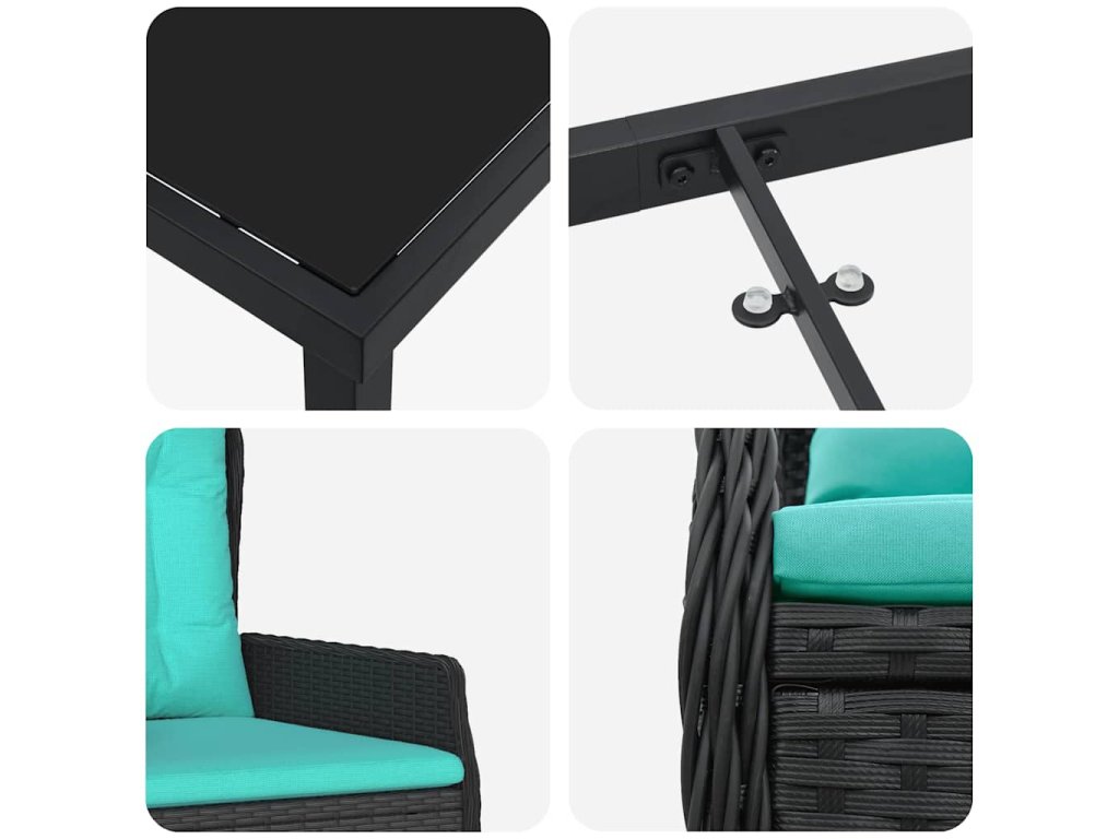 - Univerzální použití: Ideální pro zahrady, terasy a dokonce i kolem bazénů, tenhle set vytváří pohodové místo na jídlo a pokec. Jeho flexibilní styl znamená, že se hodí k různým designovým stylům, ať už máš rád minimalismus nebo něco víc šíleného.
