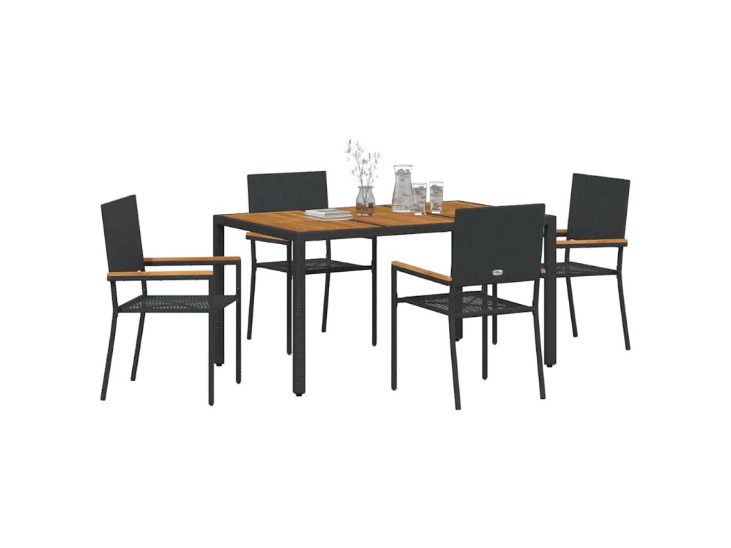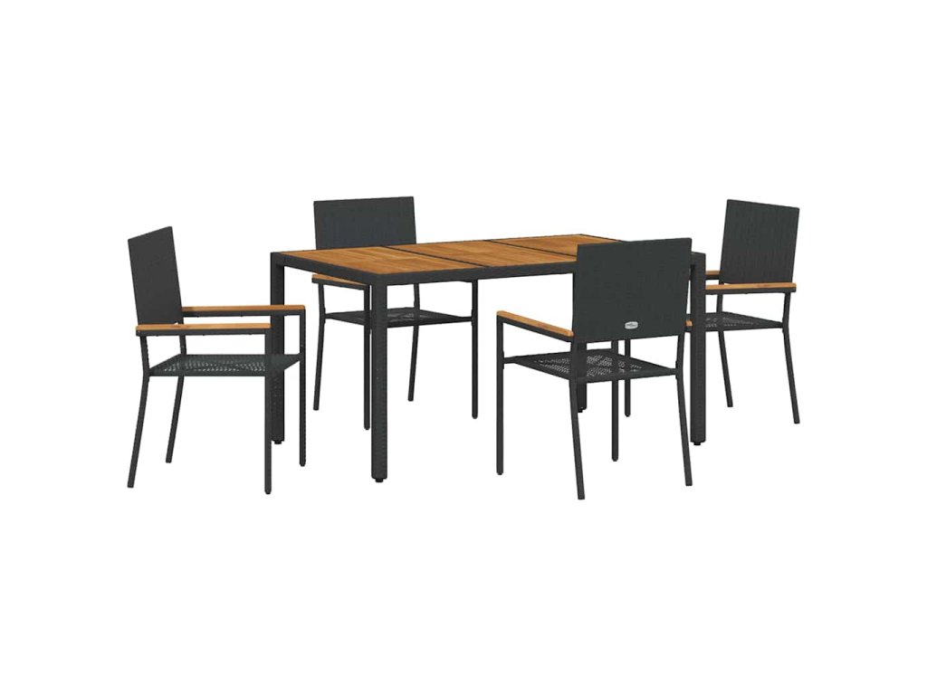 Zahradní jídelní souprava 5 pcs Černá polyratan 3365406