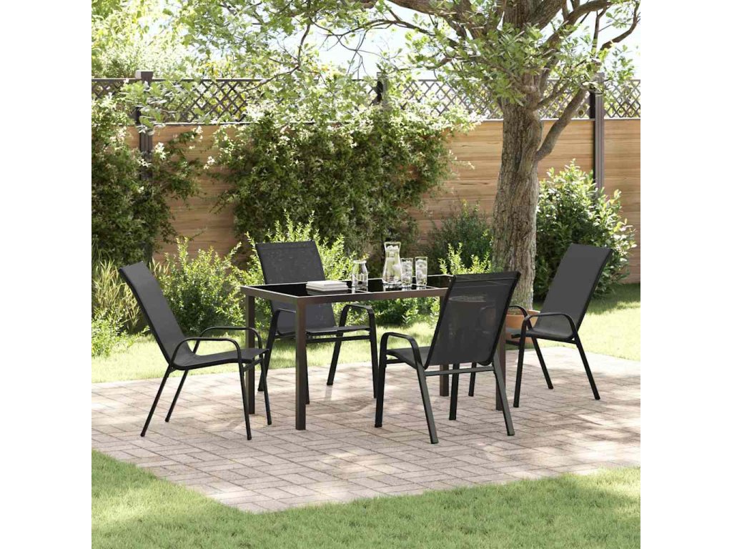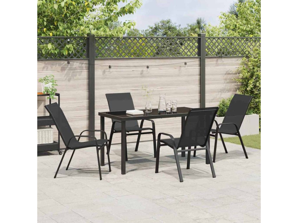 Zahradní jídelní souprava 5 pcs Černá Práškově lakovaná ocel 3379116