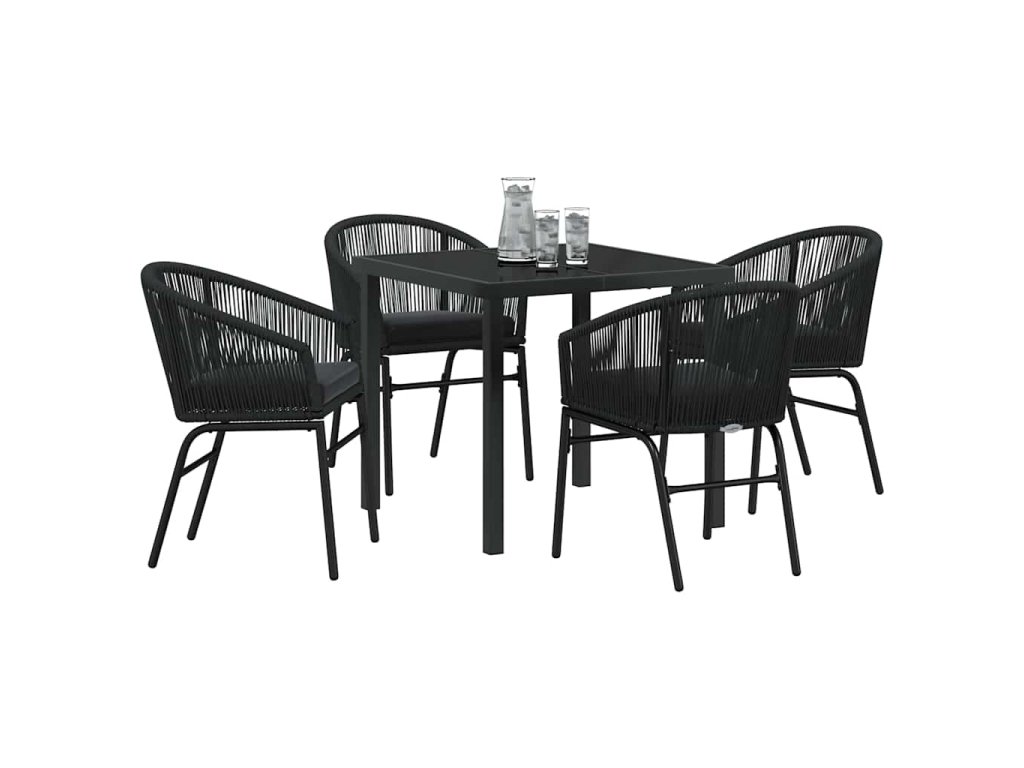 Tato moderní zahradní jídelní sada skvěle mixuje styl a funkčnost. Elegantní křivky a minimum dekorací z ní dělají ideální volbu na jarní a letní akce na vaší zahradě nebo terase. Je vytvořená pro venkovní používání a její krásné černé provedení vypadá velmi stylově, což promění jakýkoliv venkovní prostor na útulné místo pro romantické večeře nebo party s přáteli.