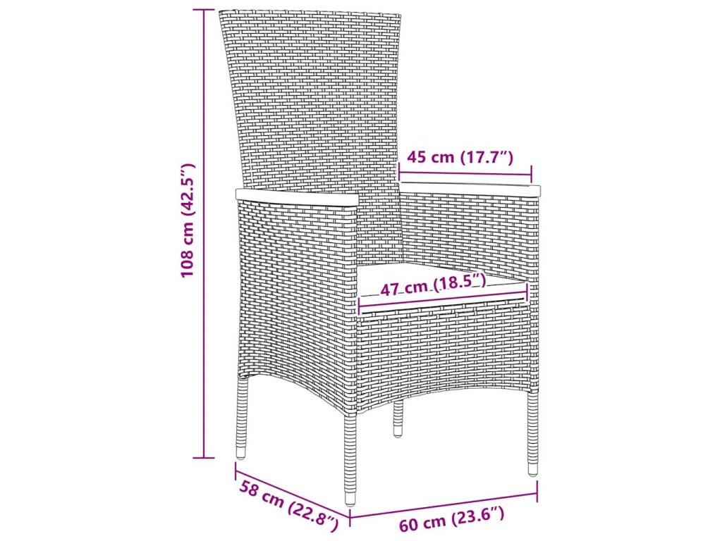 - 8 x zahradní židle: 60 x 58 x 108 cm (D x Š x V)