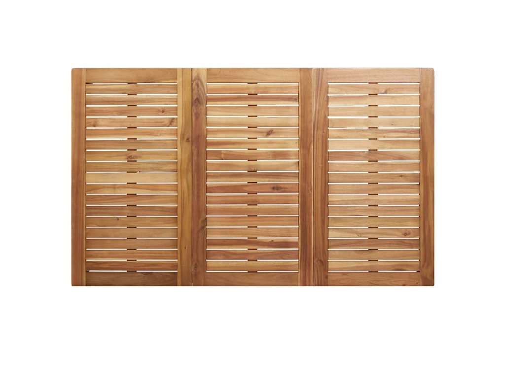 - Materiály: Jídelní set je z nerezové oceli, známé svojí pevností a odolností vůči špatnému počasí. Kvalitní ocelový rám zajišťuje stabilitu a dlouhou životnost. V kombinaci s dřevěným stolem je nejen hezký, ale i praktický pro jakékoliv počasí.