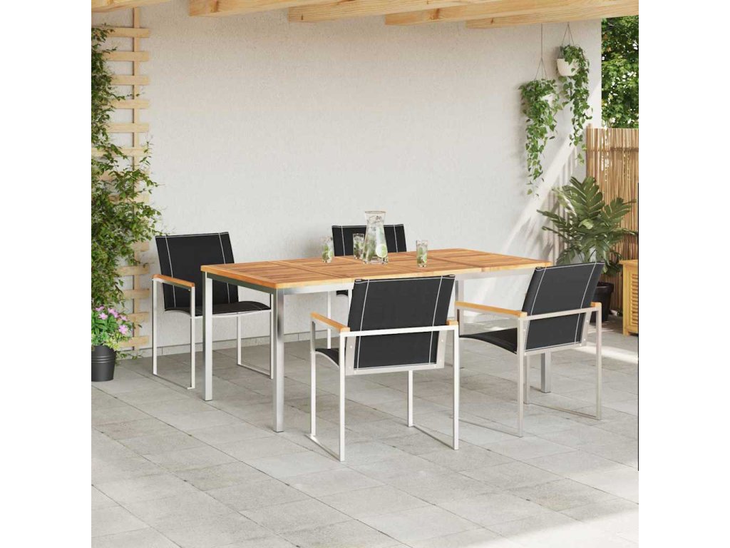 - Materiály: Nerezová ocel je super odolná a vydrží všechno. Ocelový rám s práškovým povlakem zvládne počasí a stále hezky vypadá. Textilene sedáky a opěrky jsou prodyšné a pohodlné, takže si venkovní relaxaci ještě více užijete.