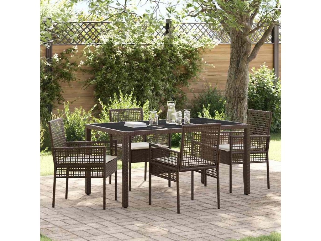 Tato sada zahradního nábytku slouží jako skvělý prvek pro jakýkoli venkovní prostor. Skvěle spojuje styl a funkčnost. S elegantním designem se hodí k různým aktivitám, od neformálních srazů po výjimečné večeře. Je ideální pro moderní zahrady a terasy, kde nabízí spoustu místa k sezení a příjemnou atmosféru. Kombinace poly ratanu a tvrzeného skla vypadá prostě úžasně, a pohodlné polštáře zajišťují relaxaci a pohodlí při jídle.