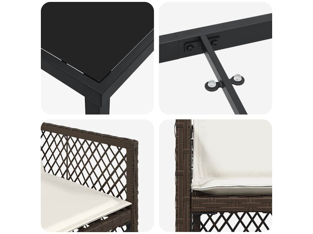 - Pohodlné sezení: Poly ratanové vlákno zaručuje pohodlné sedadlo a opěradlo, které se přizpůsobí tělu a zajišťuje příjemný zážitek. Ať už pořádáte přátele, nebo trávíte klidné chvíle s rodinou, tato místa vás zvou k odpočinku a socializaci.