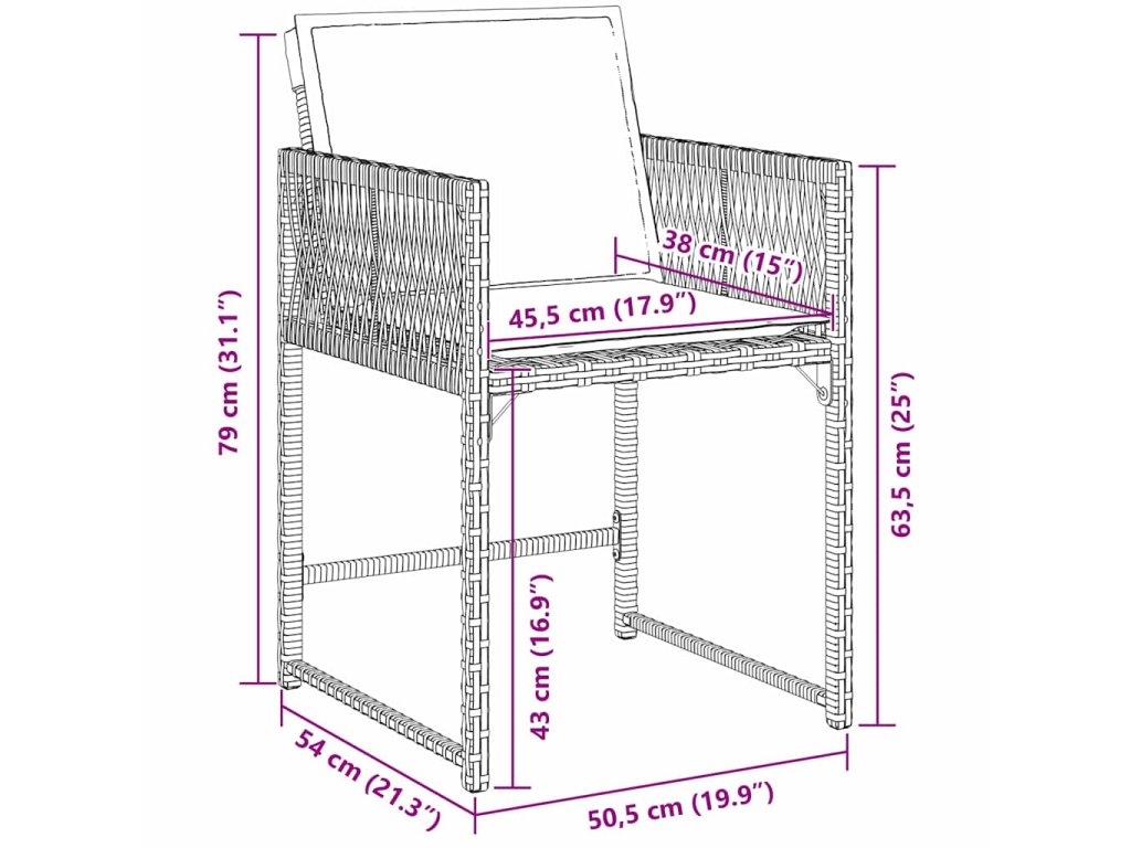 - 4 x Zahradní stolička: 50,5 x 54 x 79 cm (D x Š x V)