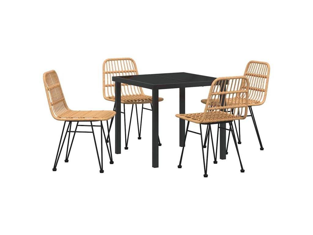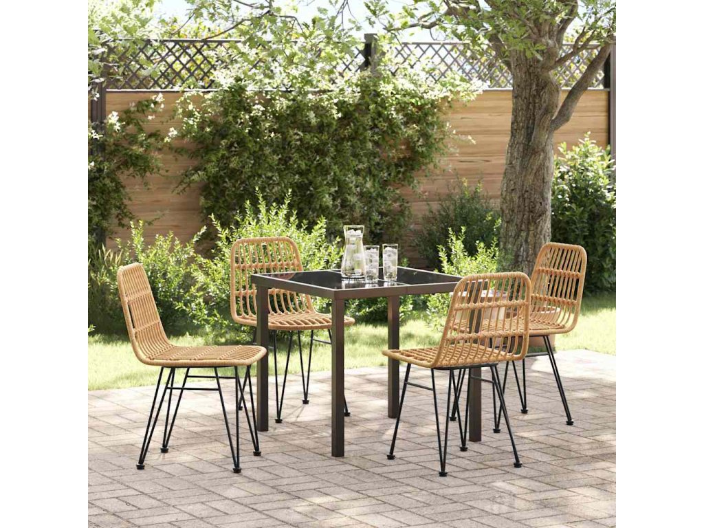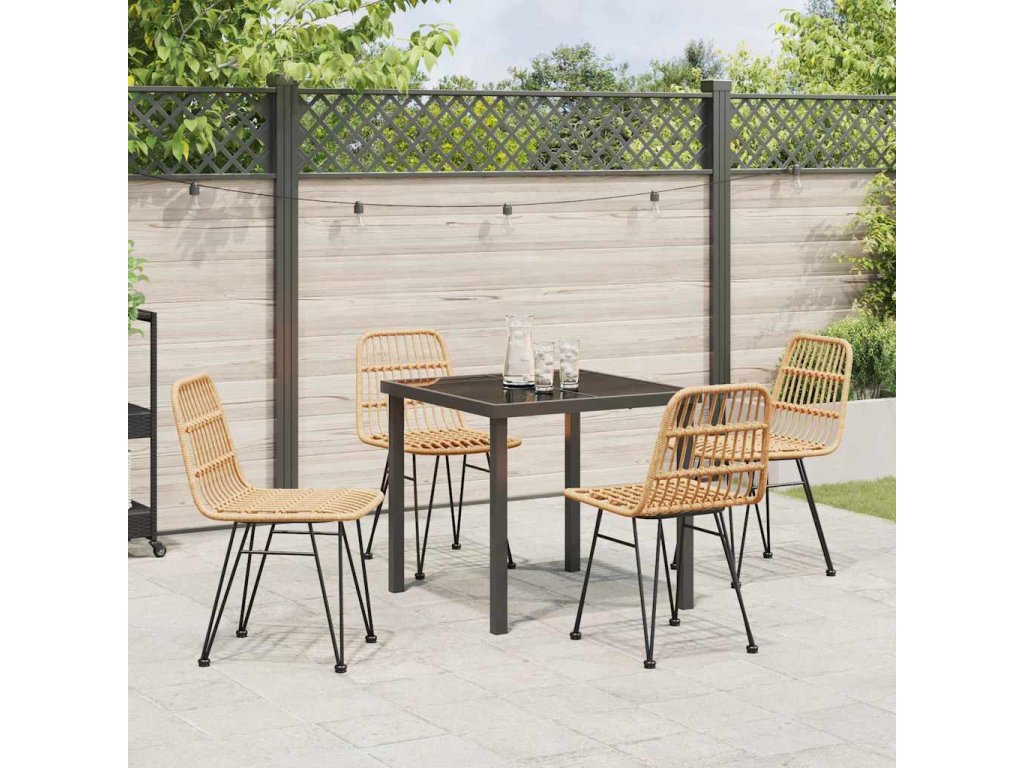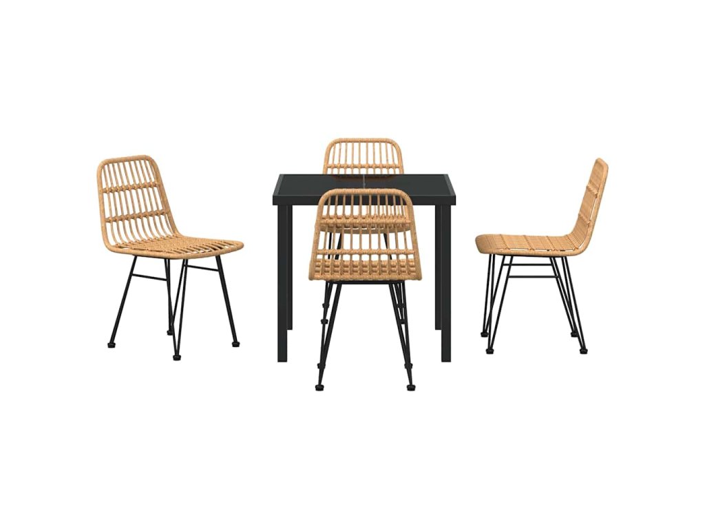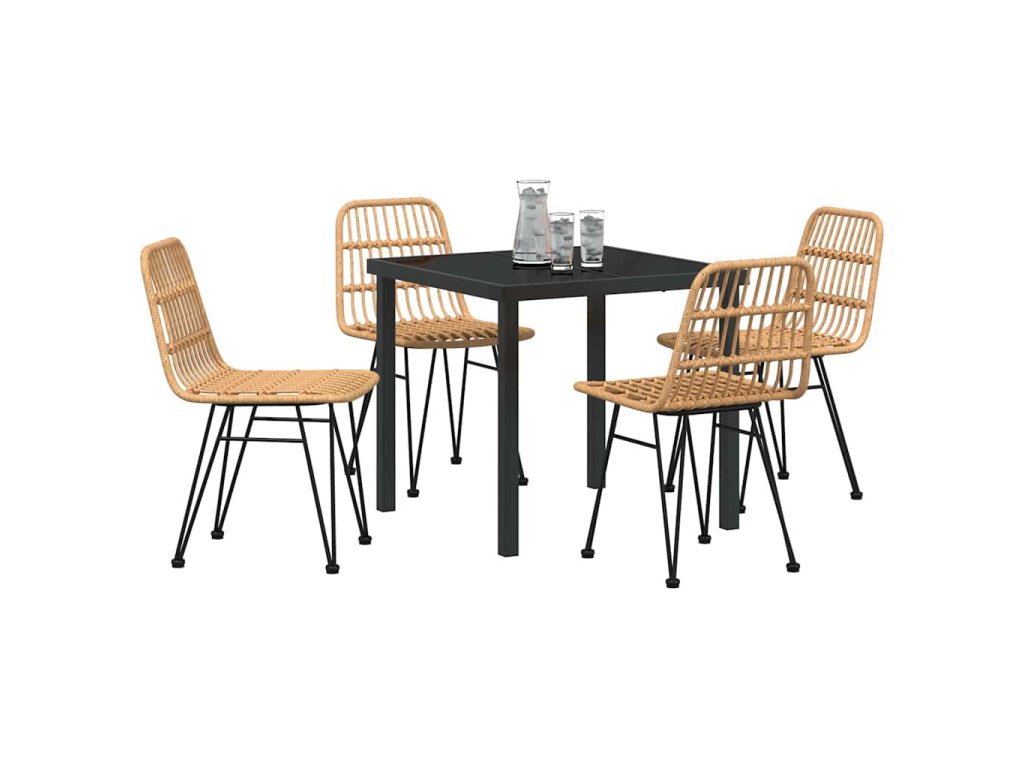 - Odolné materiály vůči počasí: Tato jídelní souprava je z kvalitních materiálů, jako je poly ratan a práškově lakovaná ocel, které zvládnou venkovní podmínky, včetně UV záření a vlhkosti. Díky tomu vypadá skvěle i po delším používání, takže vaše investice se vyplatí.