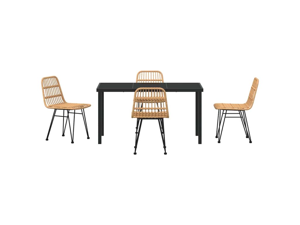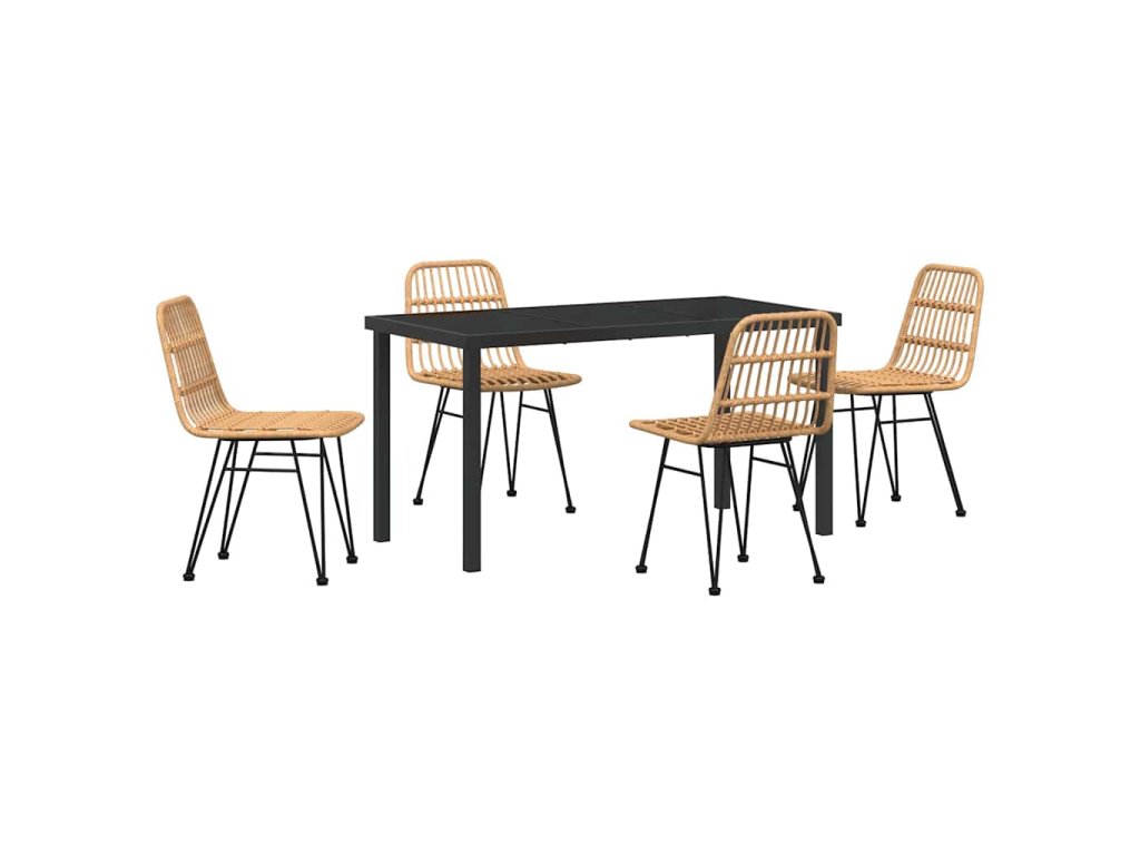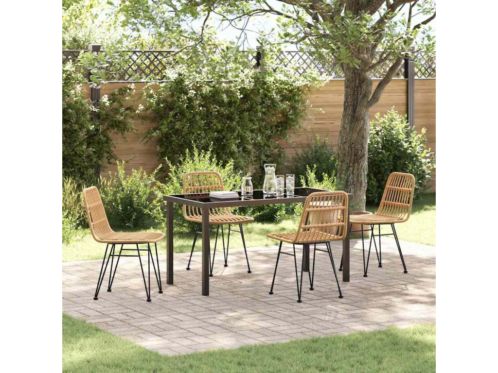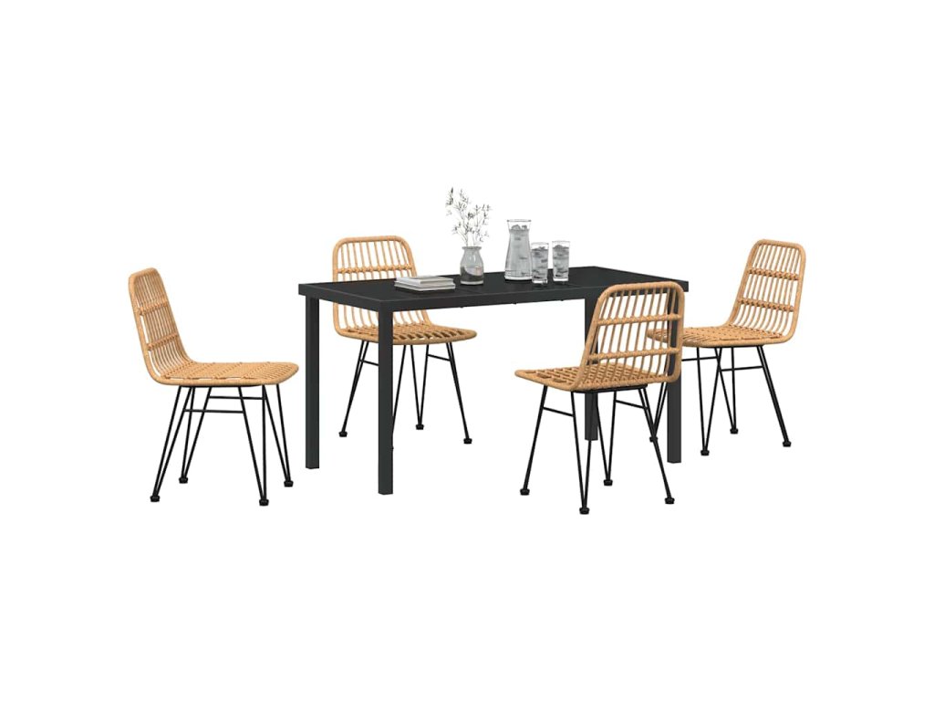 - Odolné materiály vůči počasí: Tato jídelní souprava je z kvalitních materiálů, jako je poly ratan a práškově lakovaná ocel, které zvládnou venkovní podmínky, včetně UV záření a vlhkosti. Díky tomu vypadá skvěle i po delším používání, takže vaše investice se vyplatí.