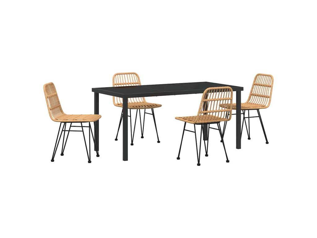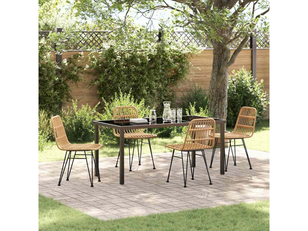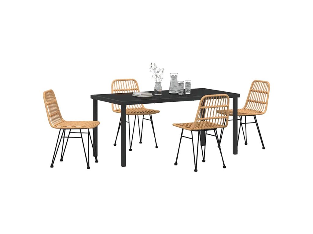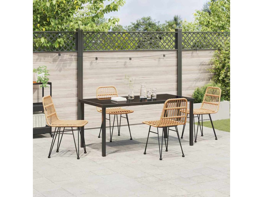 - Odolné materiály vůči počasí: Tato jídelní souprava je z kvalitních materiálů, jako je poly ratan a práškově lakovaná ocel, které zvládnou venkovní podmínky, včetně UV záření a vlhkosti. Díky tomu vypadá skvěle i po delším používání, takže vaše investice se vyplatí.