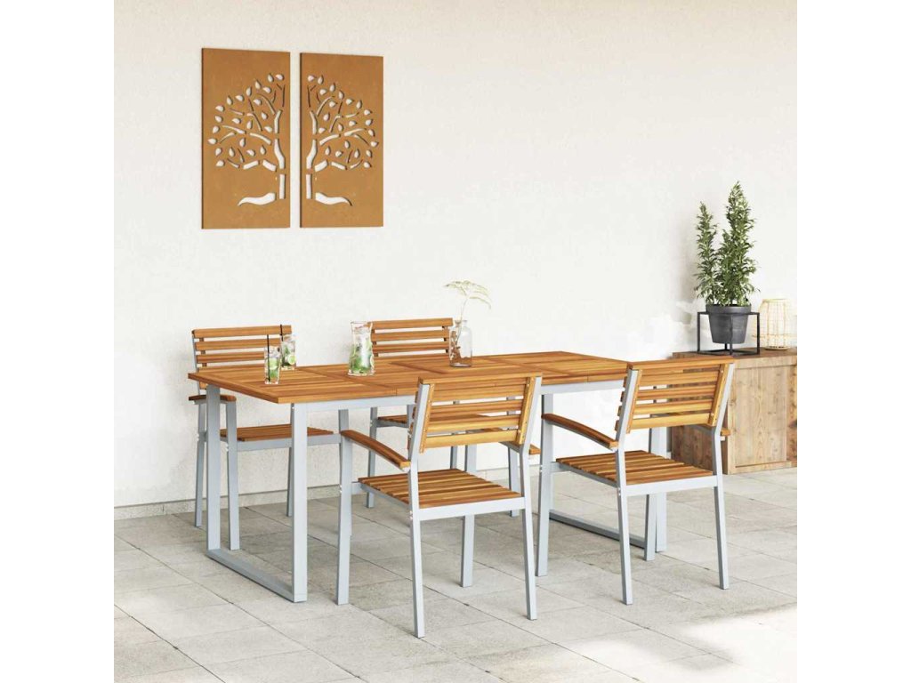 - Robustní akáciové dřevo: Tento set je vyroben z masivního akáciového dřeva, které dodává venkovnímu prostoru přírodní a teplý nádech, zajišťuje dlouhou životnost a stabilitu, a přitom vypadá skvěle v různých venkovních prostorách.