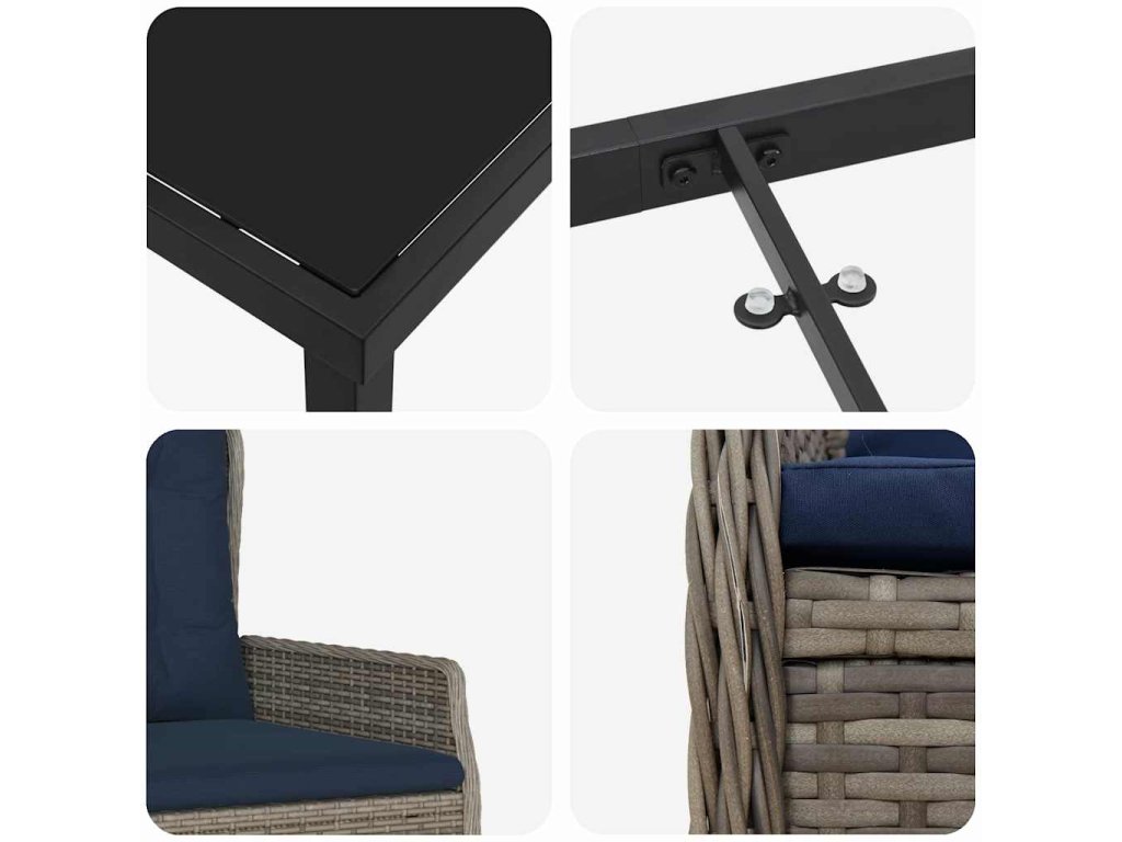 - Univerzální použití: Ideální pro zahrady, terasy a dokonce i kolem bazénů, tenhle set vytváří pohodové místo na jídlo a pokec. Jeho flexibilní styl znamená, že se hodí k různým designovým stylům, ať už máš rád minimalismus nebo něco víc šíleného.