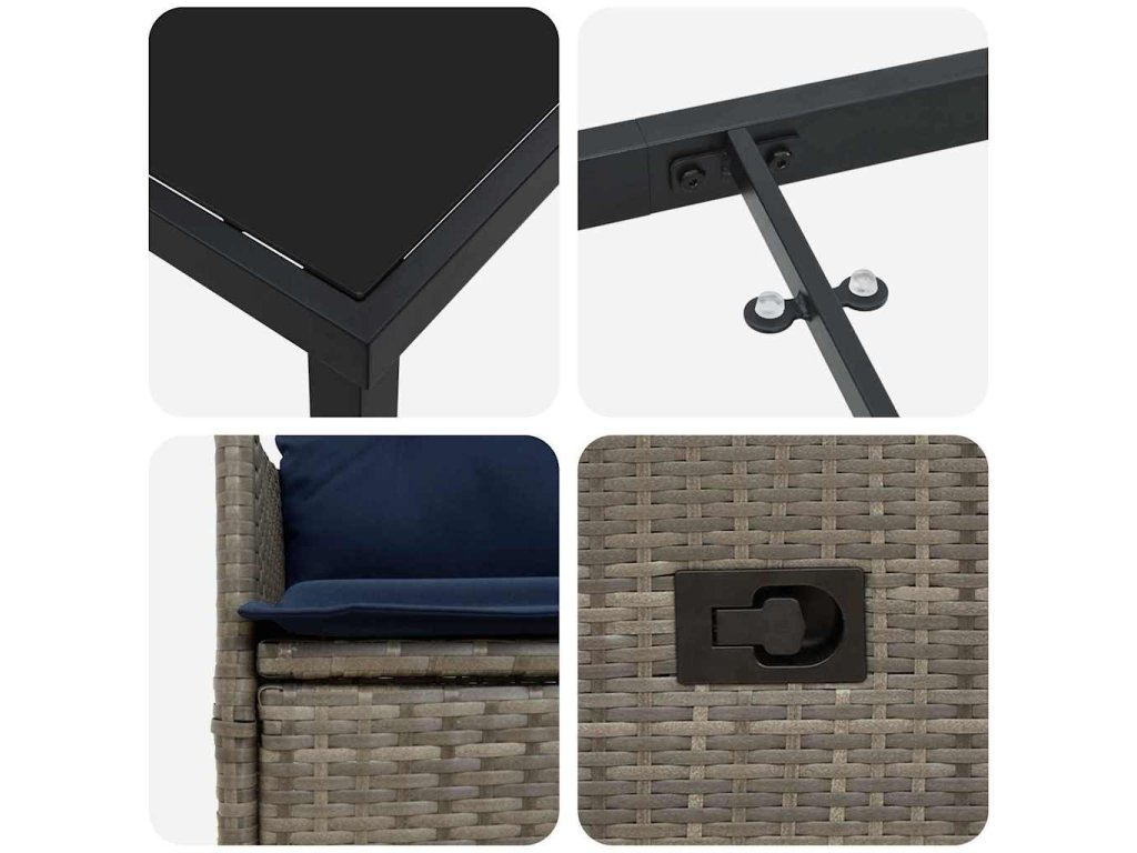 - Odolné materiály: Tento jídelní set je vyrobený z kvalitního polyratanu, takže je hezký a vydrží dlouho. Je odolný vůči UV záření a dešti, zvládne všechna povětrnostní podmínky. A silný ocelový rám dále zajišťuje stabilitu pro venkovní zábavu.