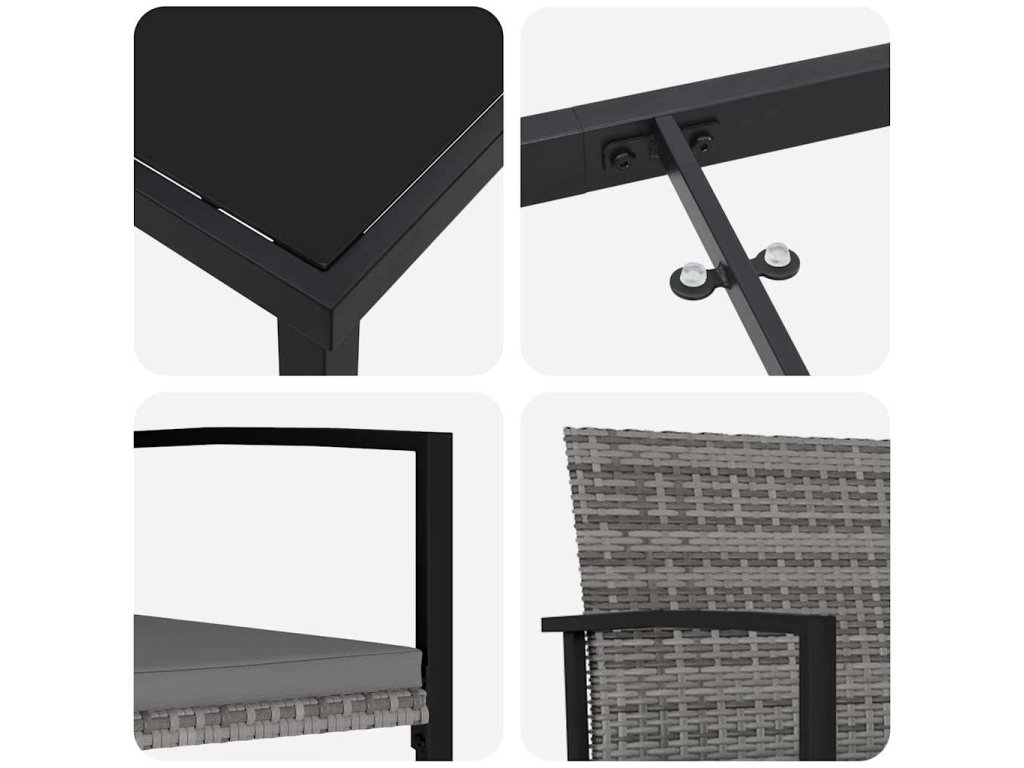Tento moderní zahradní jídelní set je ideální pro venkovní akce, spojuje styl, funkčnost a pohodu. Výrazem jeho moderního designu jsou čisté linie a minimalistické prvky, díky kterým se hodí do jakékoli zahrady nebo terasy. Černá barva mu dodává šmrnc, takže se hodí na různou příležitosti, od neformálních brunchů po elegantní večeře.