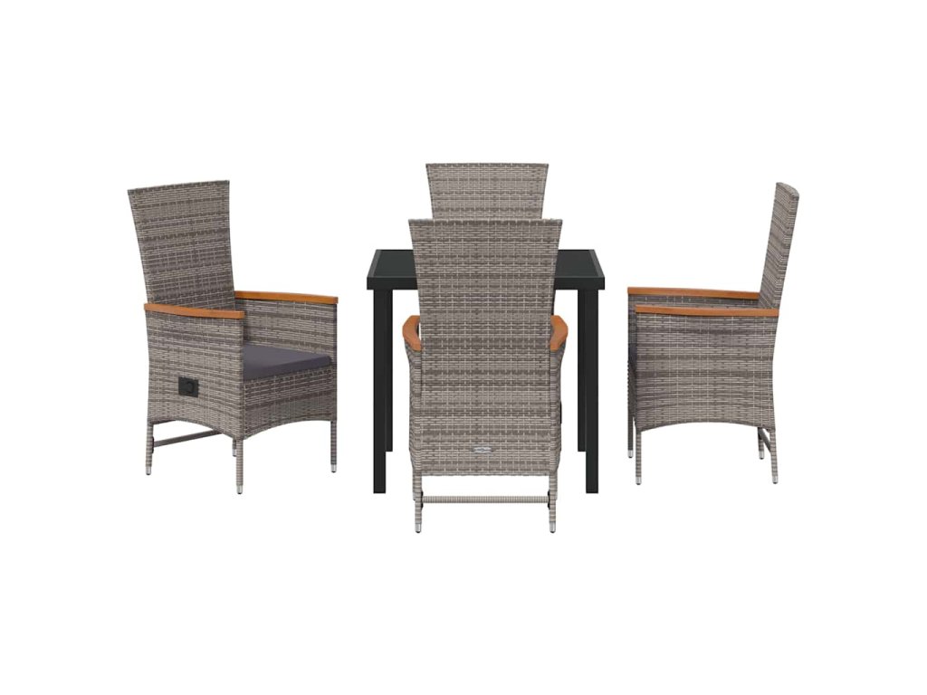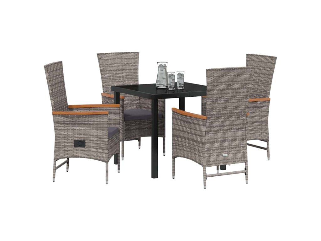 Tento zahradní jídelní set spojuje moderní design s praktickými funkcemi a vytváří tak příjemné prostředí pro venkovní aktivity. S konstrukcí z práškově lakované oceli, tvrzeného skla a pleteného polyratanu je nejen krásný, ale i velmi užitečný. Jeho elegantní linie se skvěle hodí na jakoukoliv zahradu nebo terasu a stává se perfektním místem pro setkání s rodinou a přáteli.