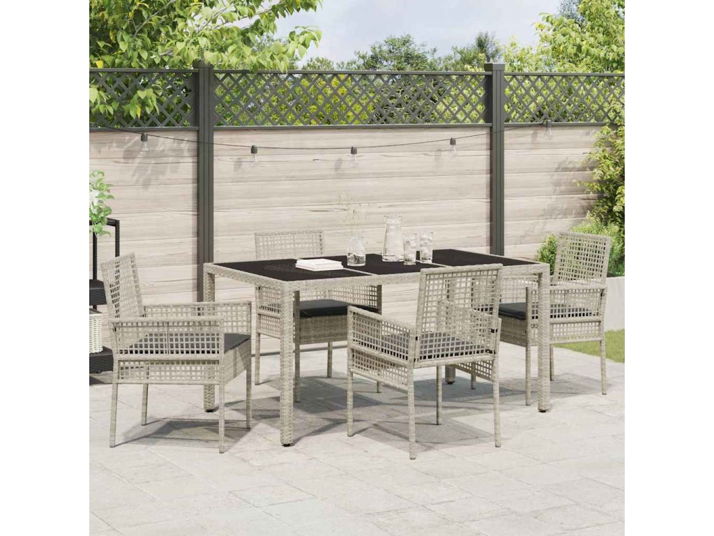 Tato sada zahradního nábytku slouží jako skvělý prvek pro jakýkoli venkovní prostor. Skvěle spojuje styl a funkčnost. S elegantním designem se hodí k různým aktivitám, od neformálních srazů po výjimečné večeře. Je ideální pro moderní zahrady a terasy, kde nabízí spoustu místa k sezení a příjemnou atmosféru. Kombinace poly ratanu a tvrzeného skla vypadá prostě úžasně, a pohodlné polštáře zajišťují relaxaci a pohodlí při jídle.