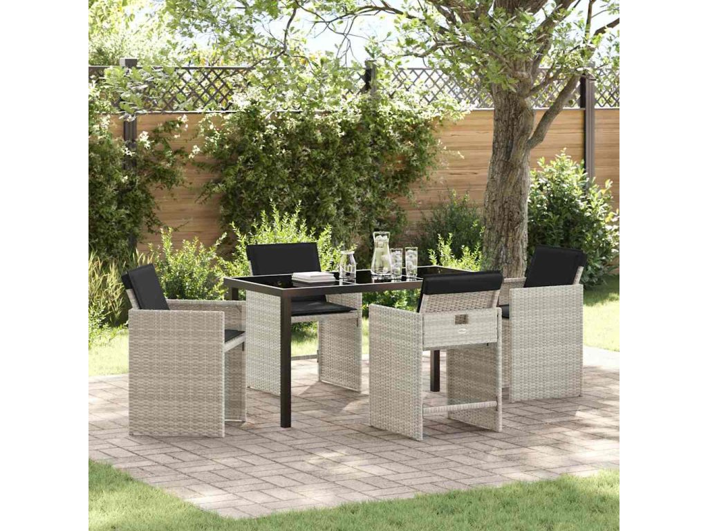 Zahradní jídelní souprava 5 pcs Světle šedá polyratan 3379993