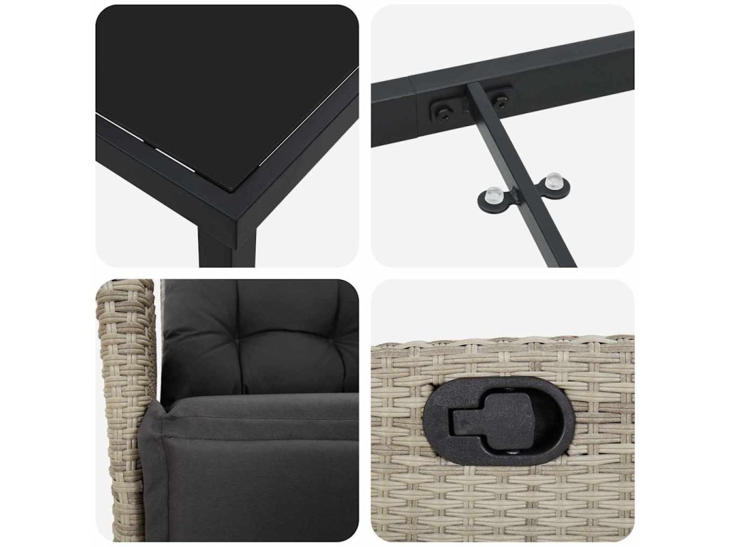 - Údržba a péče Snadná údržba s doporučenými ochrannými potahy, když je set nepoužívaný. Jednoduché zachování kvality prodlouží životnost i při sezónních změnách.
