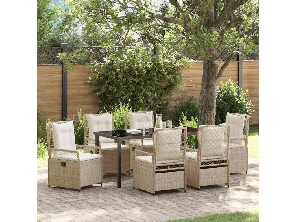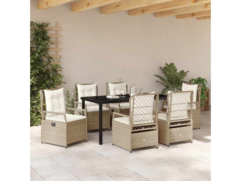 Zahradní jídelní souprava 7 pcs Beige a krémová bílá polyratan 3381013