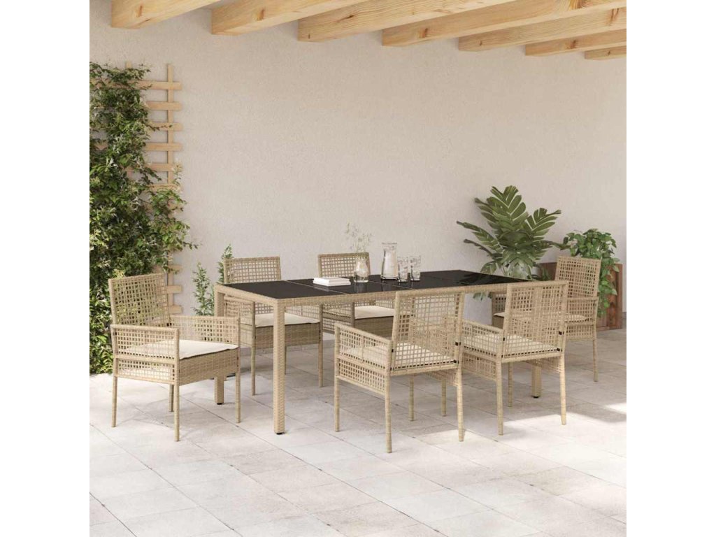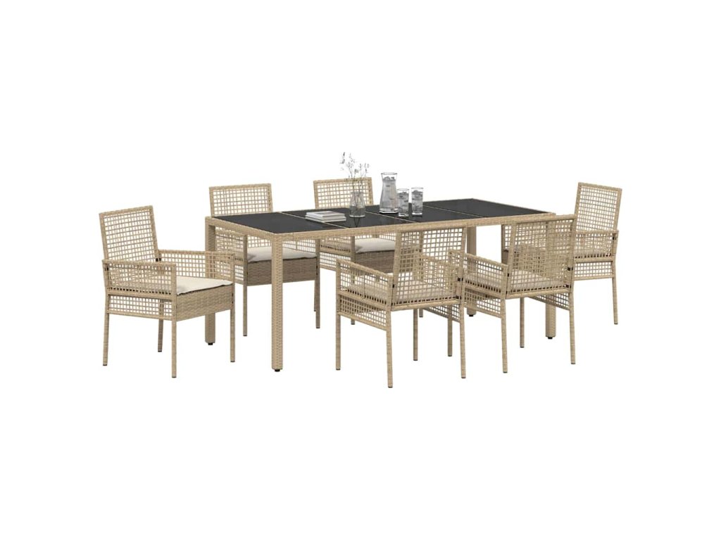 Zahradní jídelní souprava 7 pcs Béžová polyratan 3334891