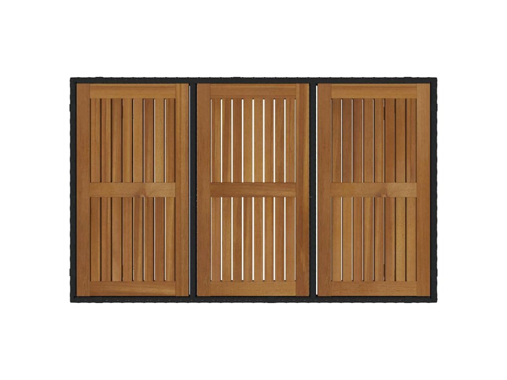 - Prémiové materiály: Všechny části setu jsou z kvalitního polyratanu, který dobře vypadá a vydrží. Akáciové dřevo dodává šmrnc a zajišťuje dlouhou životnost. Ocelová konstrukce dodává stabilitu a skvěle vypadá za každého počasí.