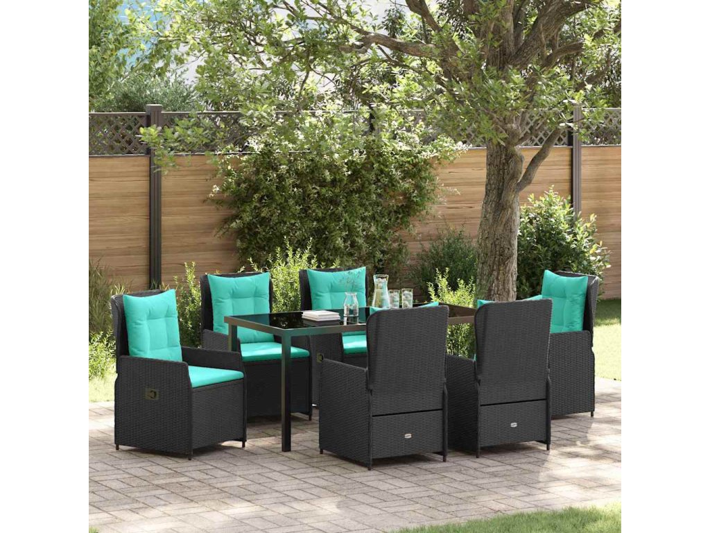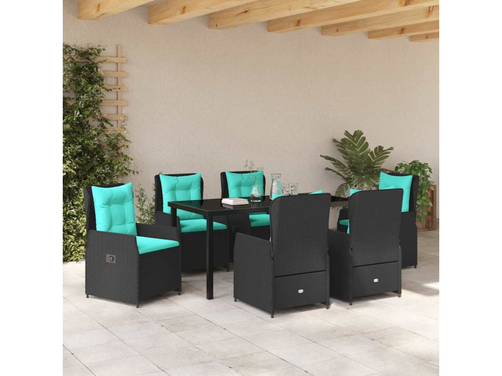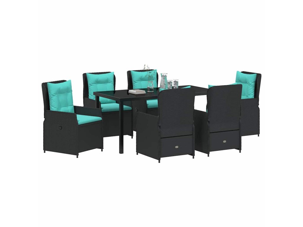 Zahradní jídelní souprava 7 pcs Černá Poly ratan 3381041